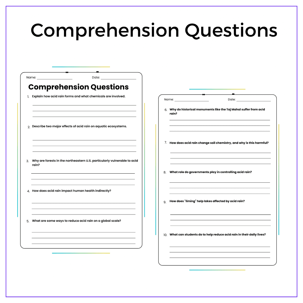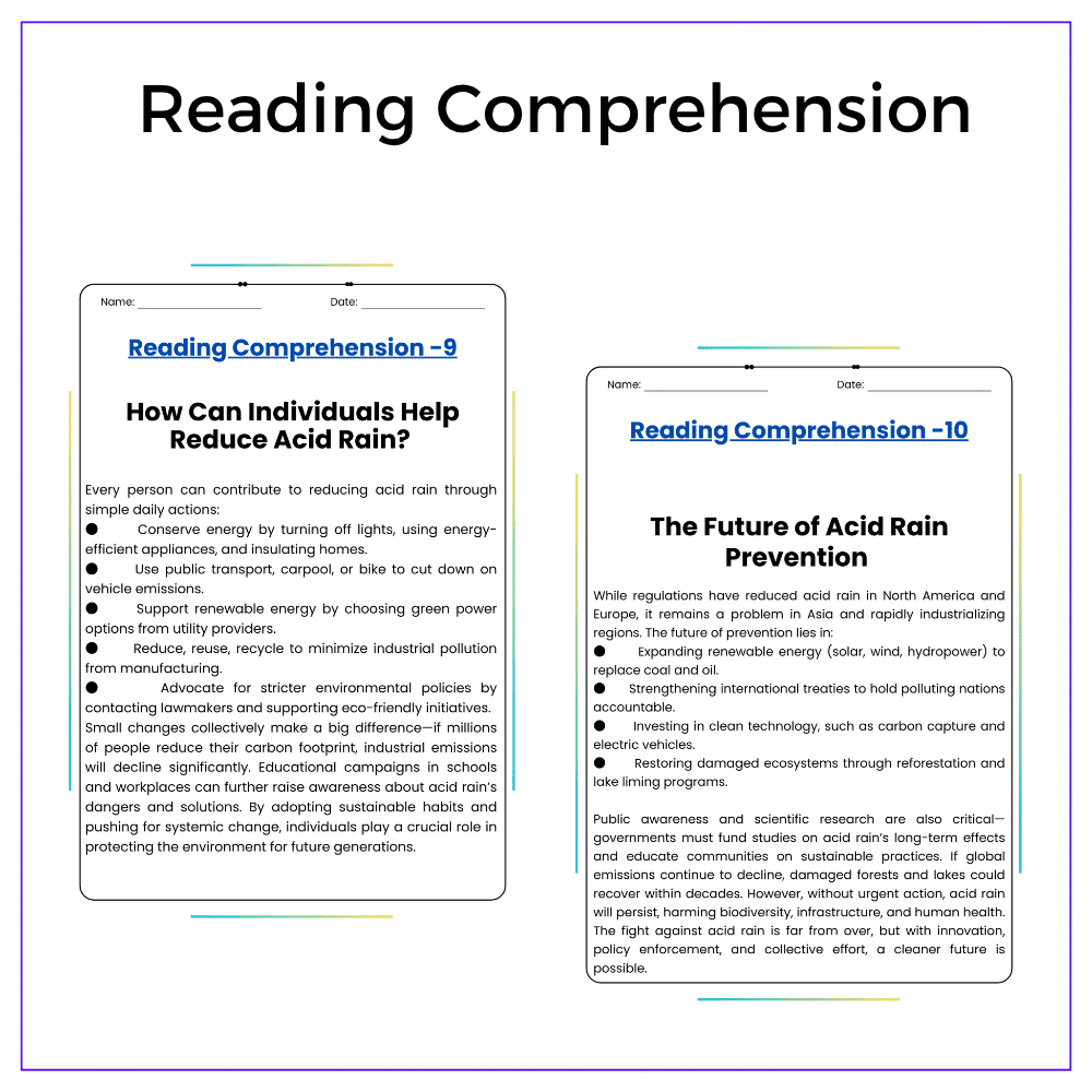 • Comprehension passages – Explain how acid rain forms and why it’s harmful
