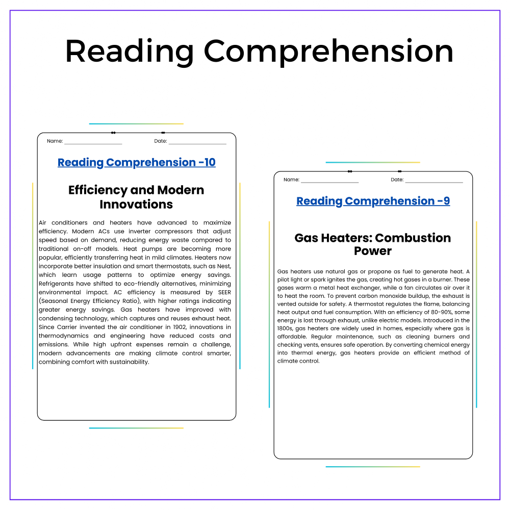 • Comprehension passages – Learn how heating and cooling systems work