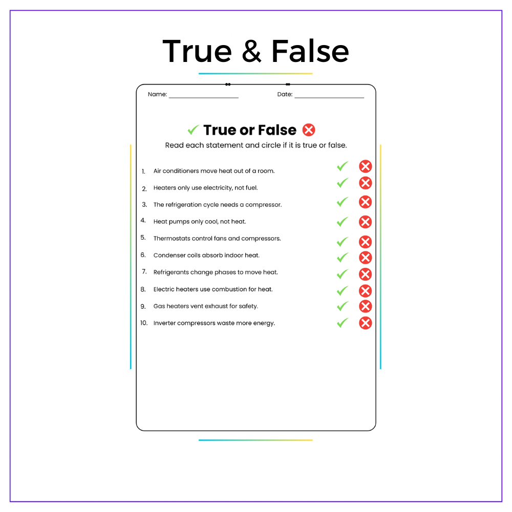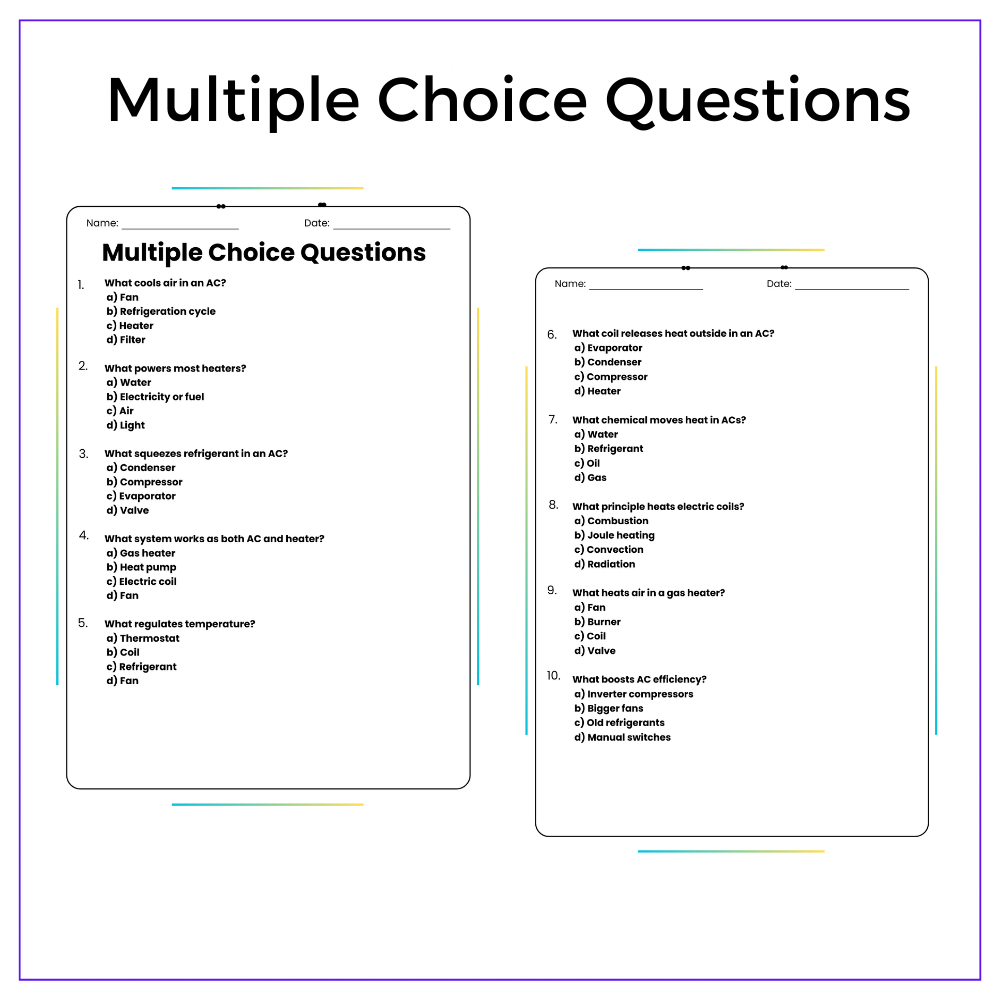 Perfect for individual assignments, group learning, homeschooling, or review, this worksheet simplifies HVAC systems through engaging comprehension passages, fill-in-the-blanks, multiple-choice questions (MCQs), true/false exercises, and problem-solving tasks. The included class activities promote hands-on discovery and practical learning.