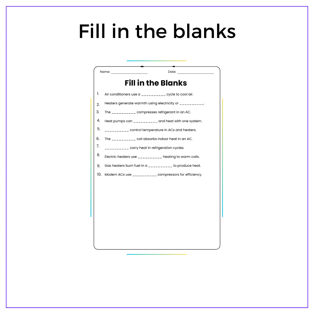 This worksheet helps your students understand everyday science with this interactive The Functioning of Air Conditioners and Heaters worksheet! Designed for grades 4-8, this resource explores how these devices use energy, fluids, and temperature control to regulate comfort indoors, making real-world physics and engineering topics fun to explore.