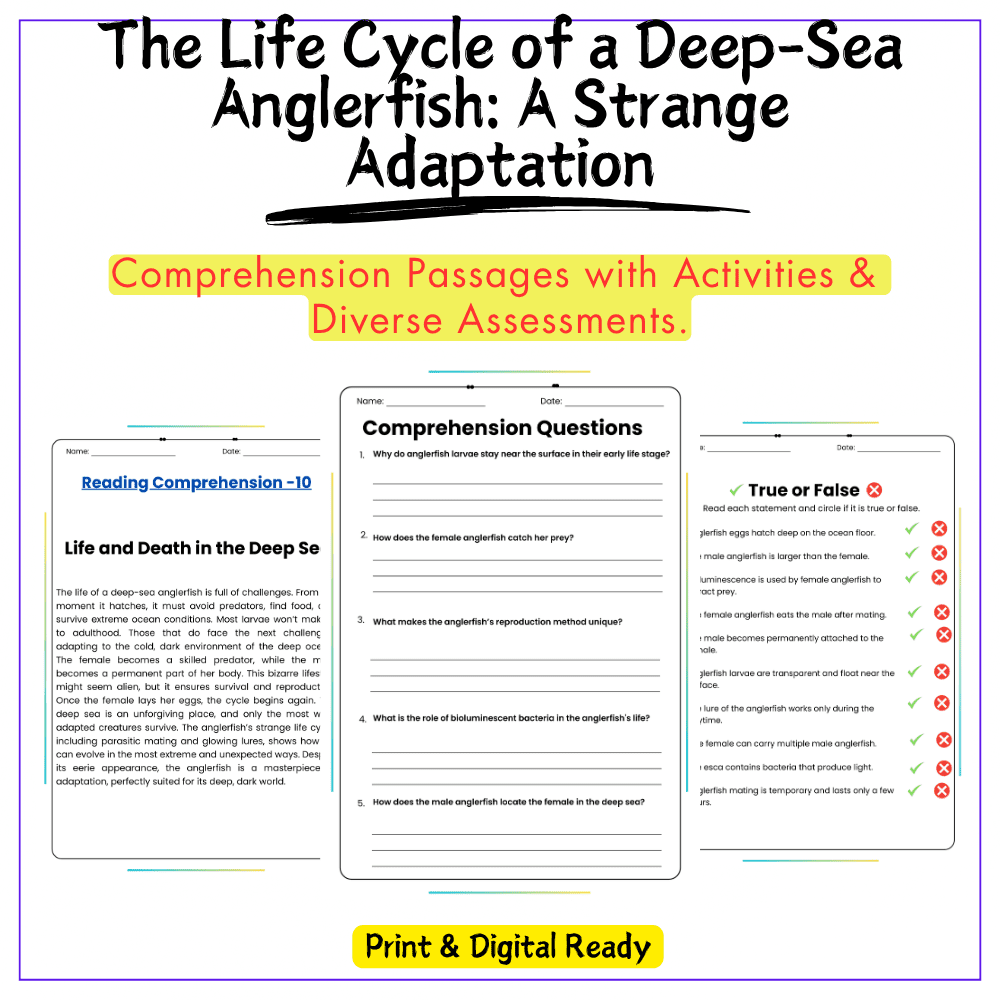 - Comprehension passages – Discover how deep-sea anglerfish grow and adapt