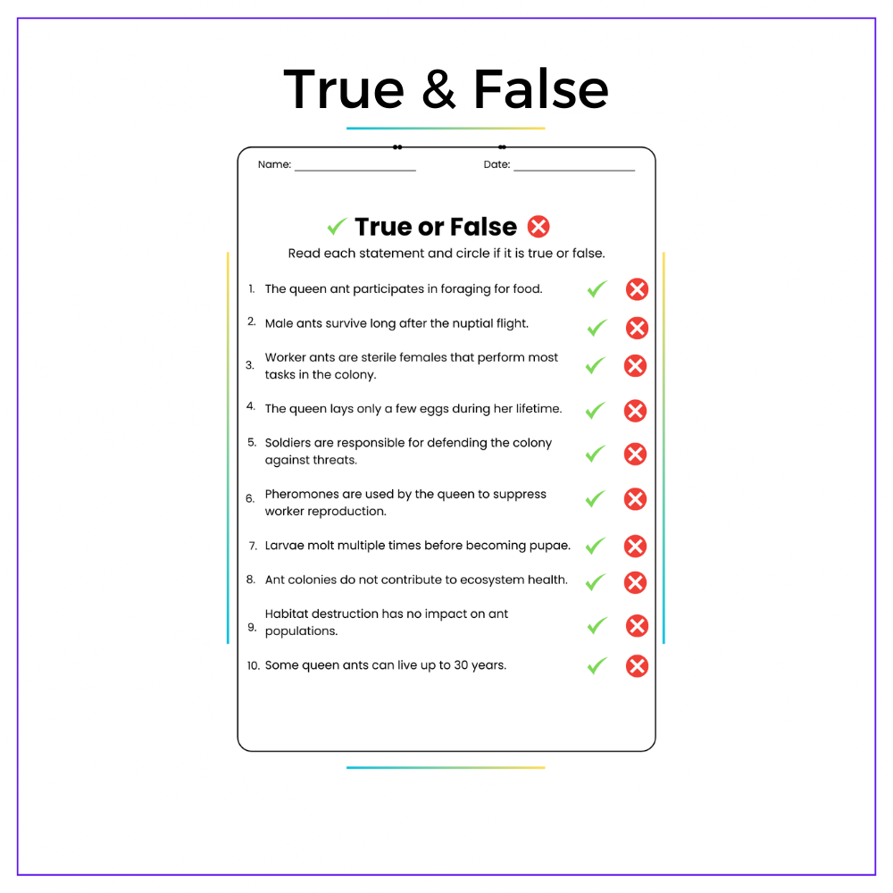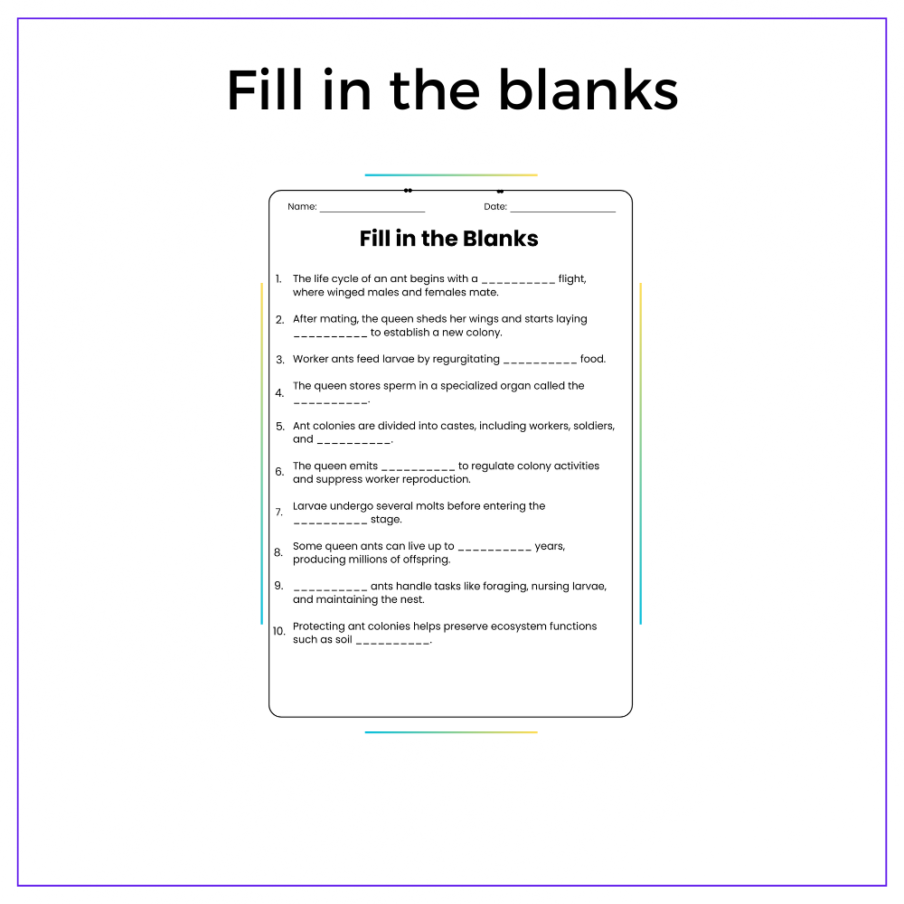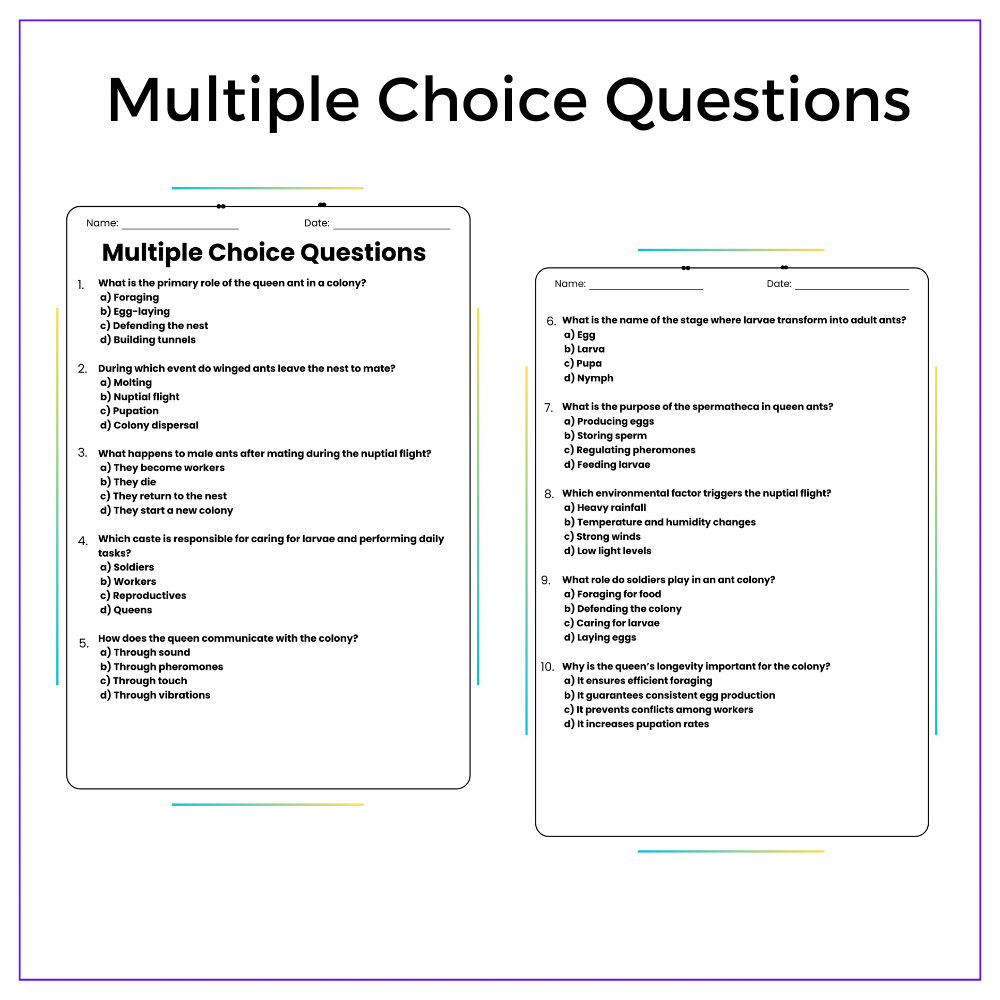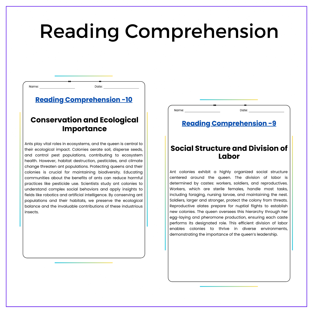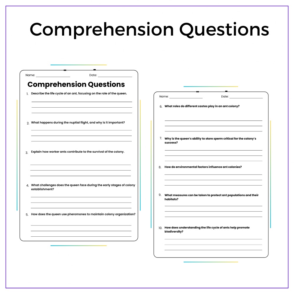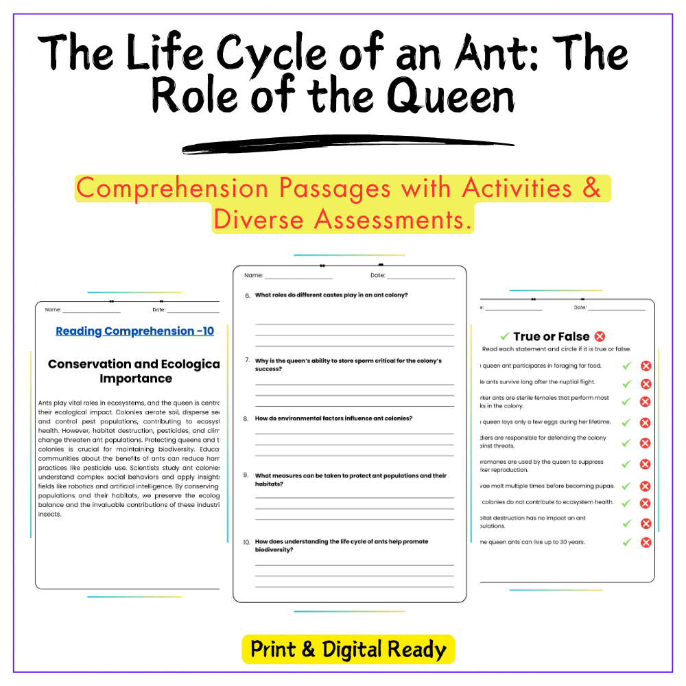 • Comprehension passages – Clear explanations of each stage in an ant’s life
