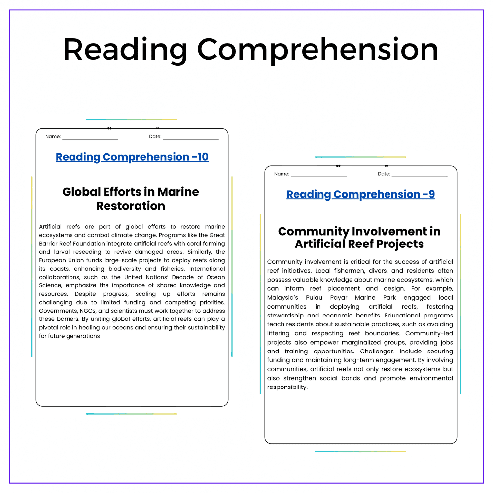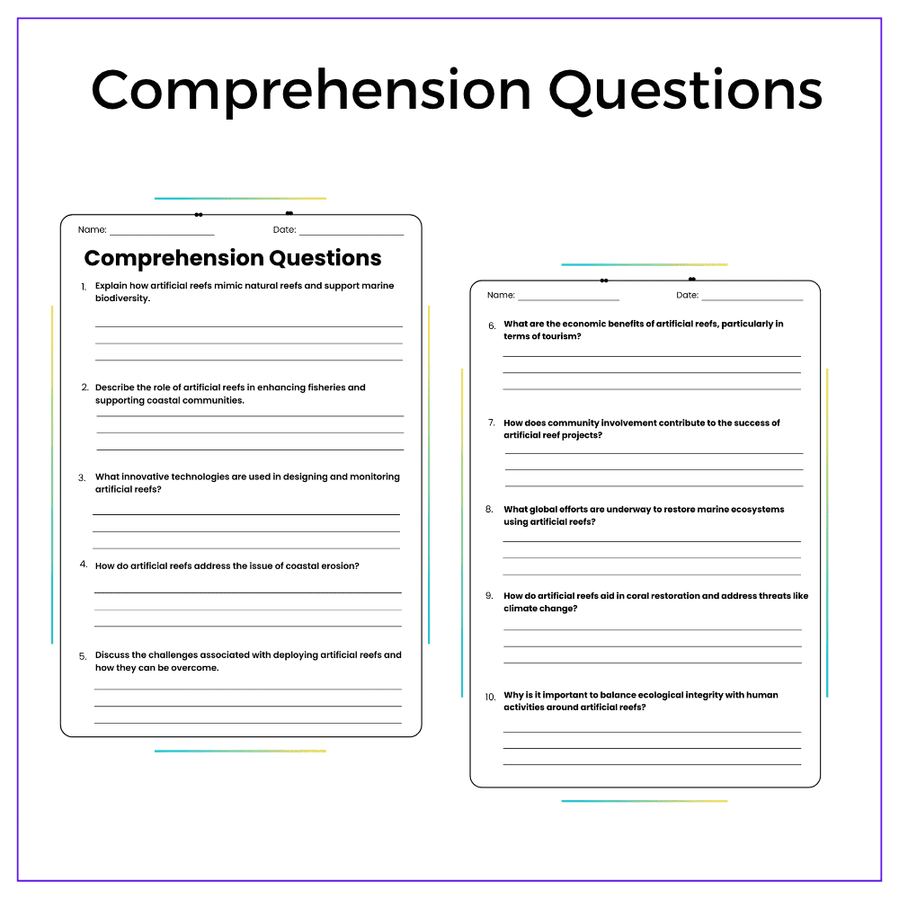 • Comprehension passages – Explain how artificial reefs support marine ecosystems