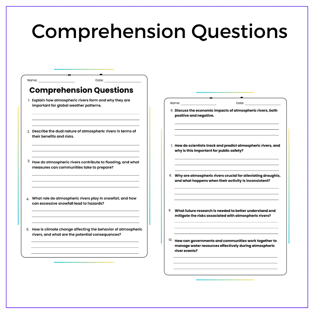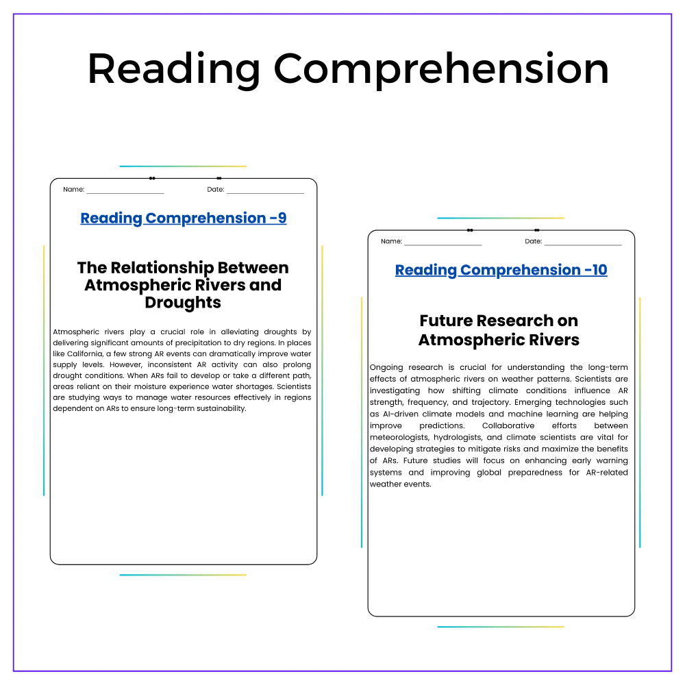 • Comprehension passages – Explain what atmospheric rivers are and how they form