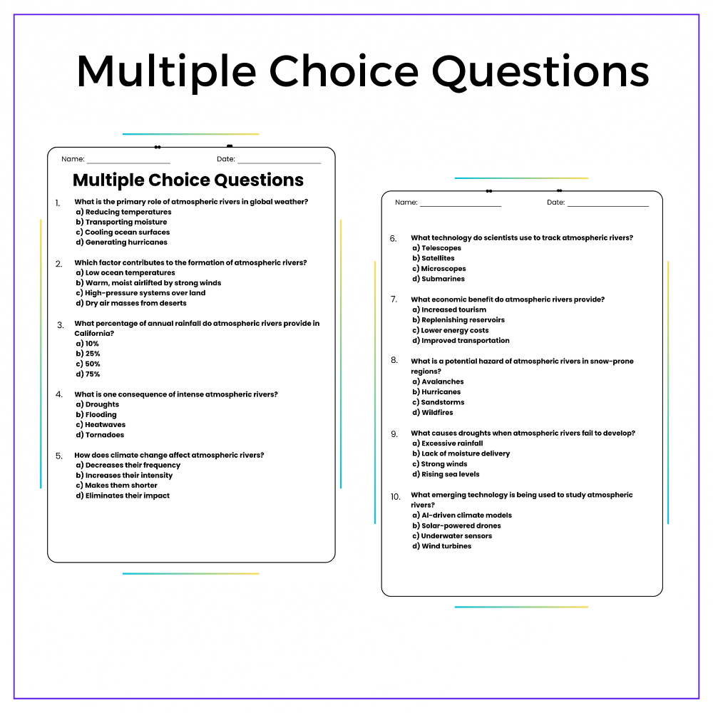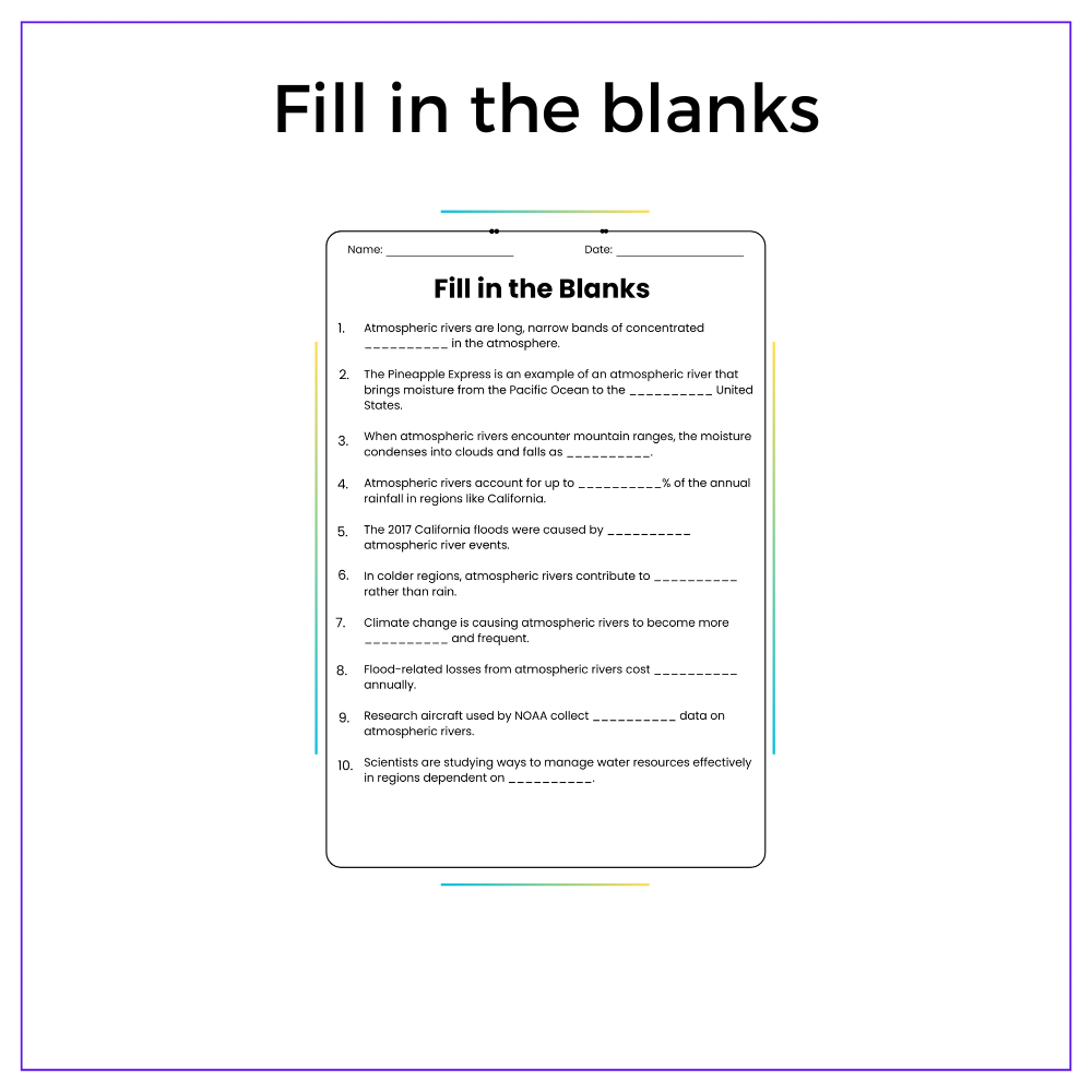 Learn about atmospheric rivers with our worksheet for grades 4-8! Explore weather in this engaging lesson!