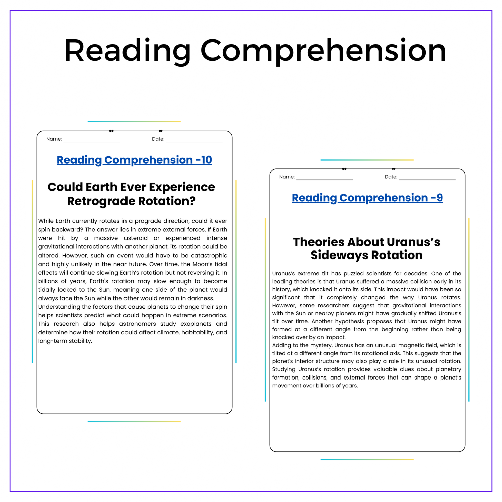 • Comprehension passages – Explain retrograde rotation clearly