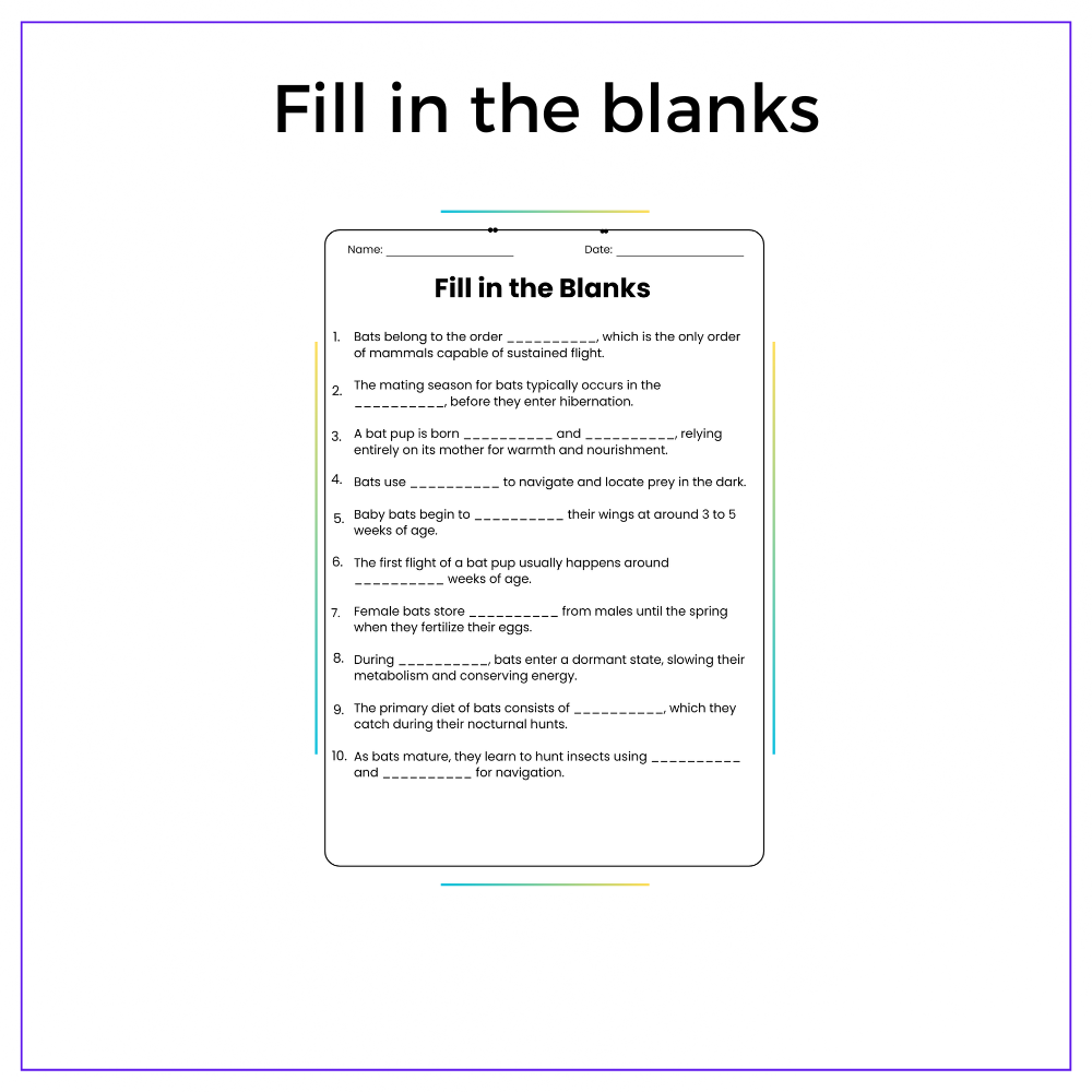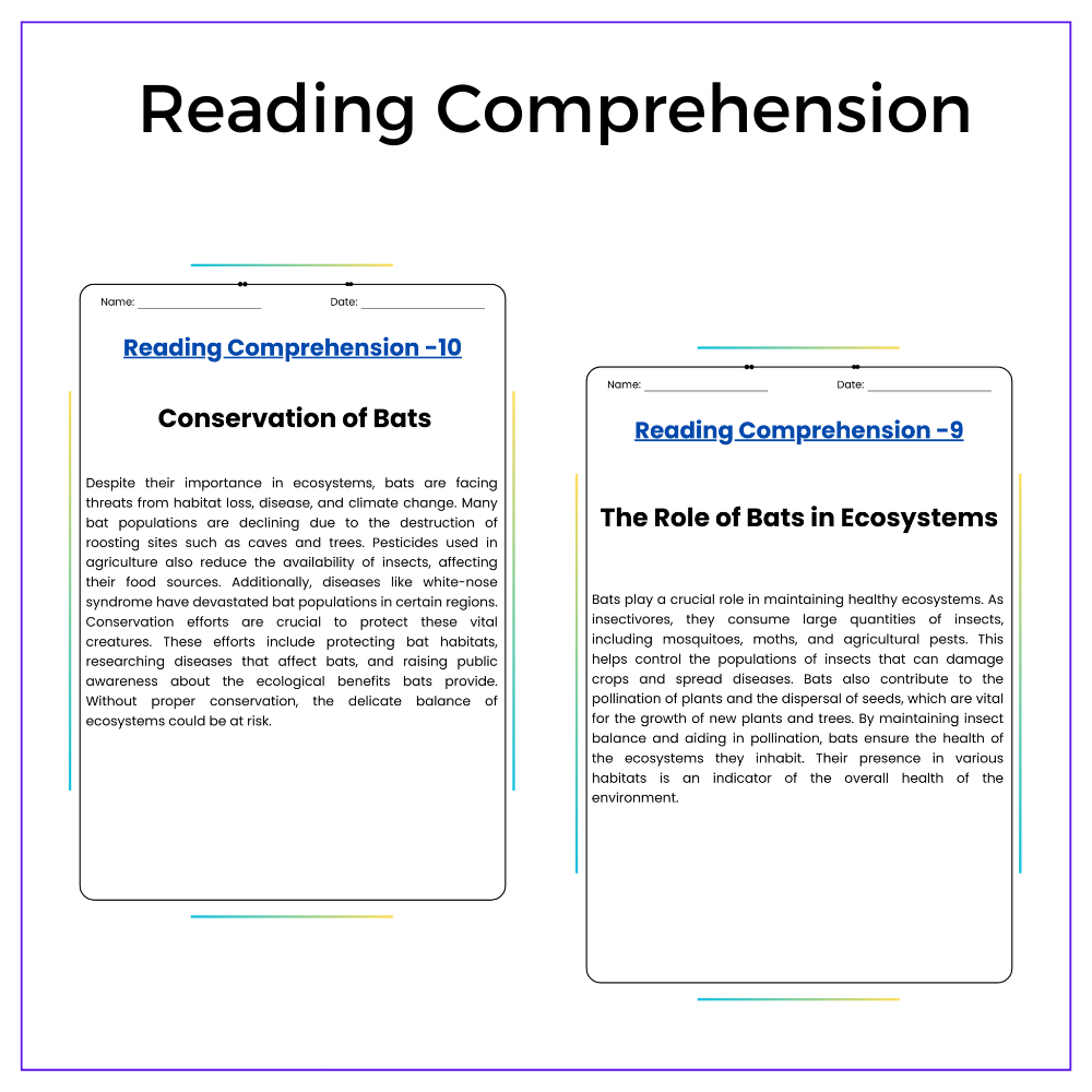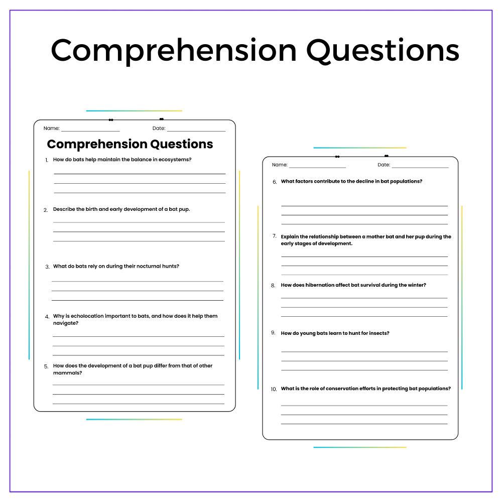 • Comprehension passages – Clear explanations of a bat’s life cycle