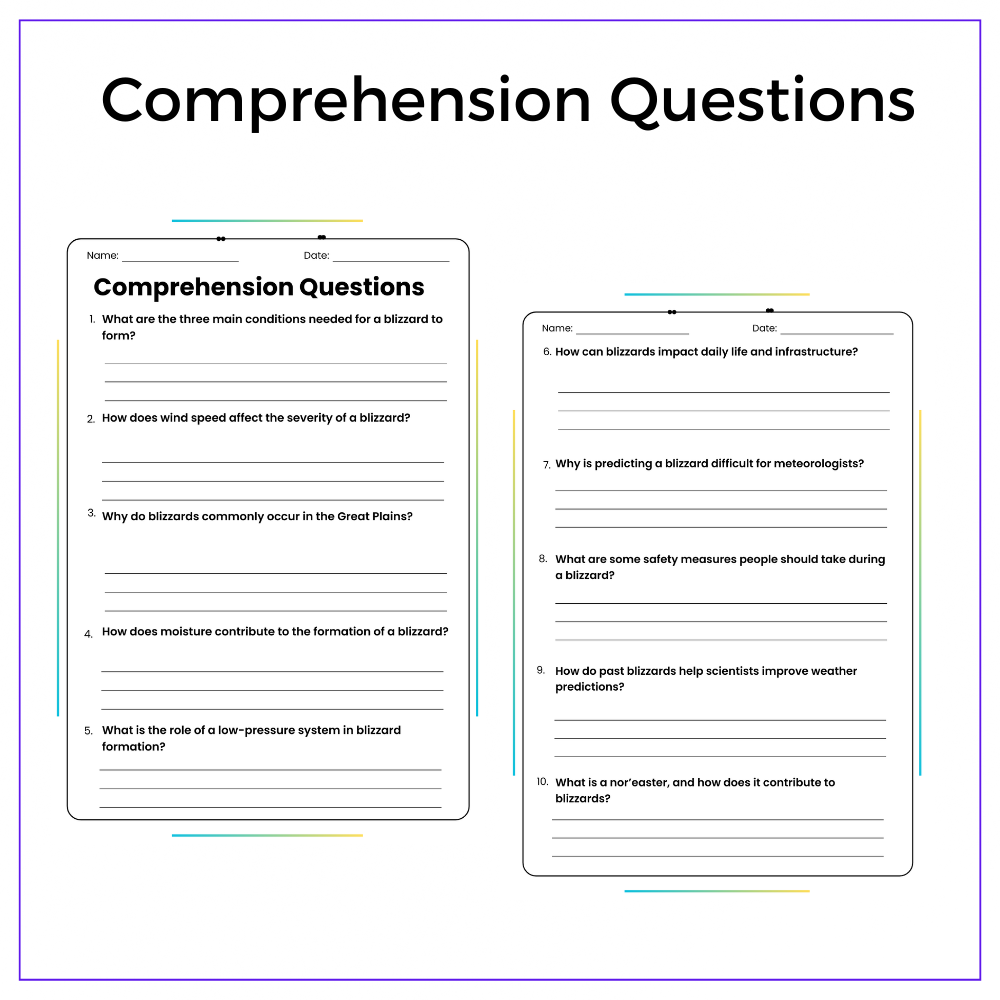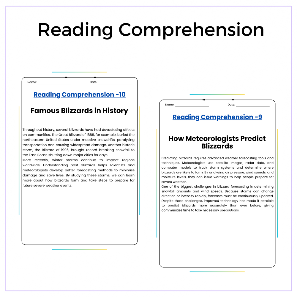 • Comprehension passages – Explain how blizzards develop