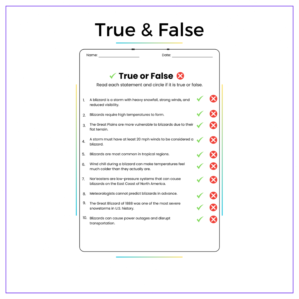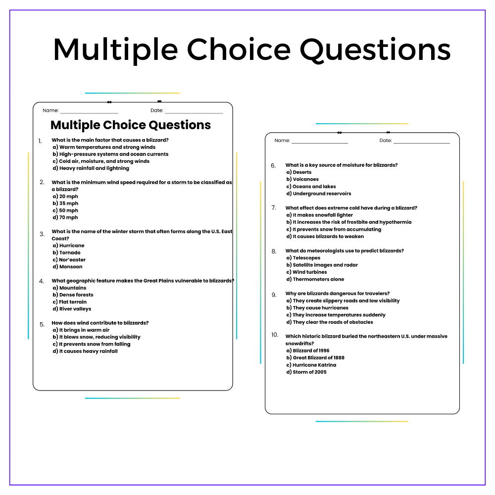 This worksheet helps your students uncover the chilling science behind snowstorms with this interactive The Formation of Blizzards worksheet! Designed for grades 4-8, this resource explores how temperature, air pressure, and moisture come together to create extreme winter weather, making Earth science exciting and understandable.