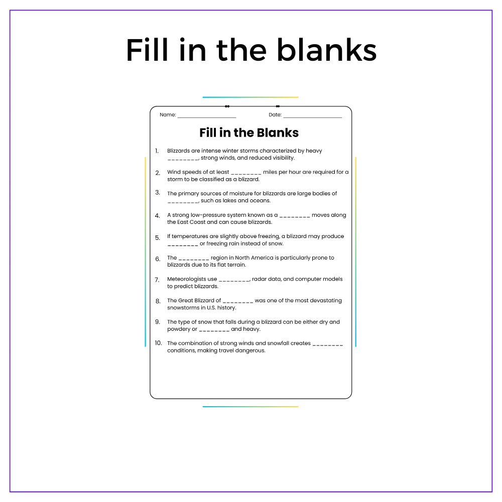 Discover how blizzards form with our worksheet for grades 4-8! Learn meteorology in this engaging lesson!