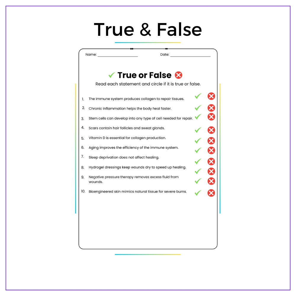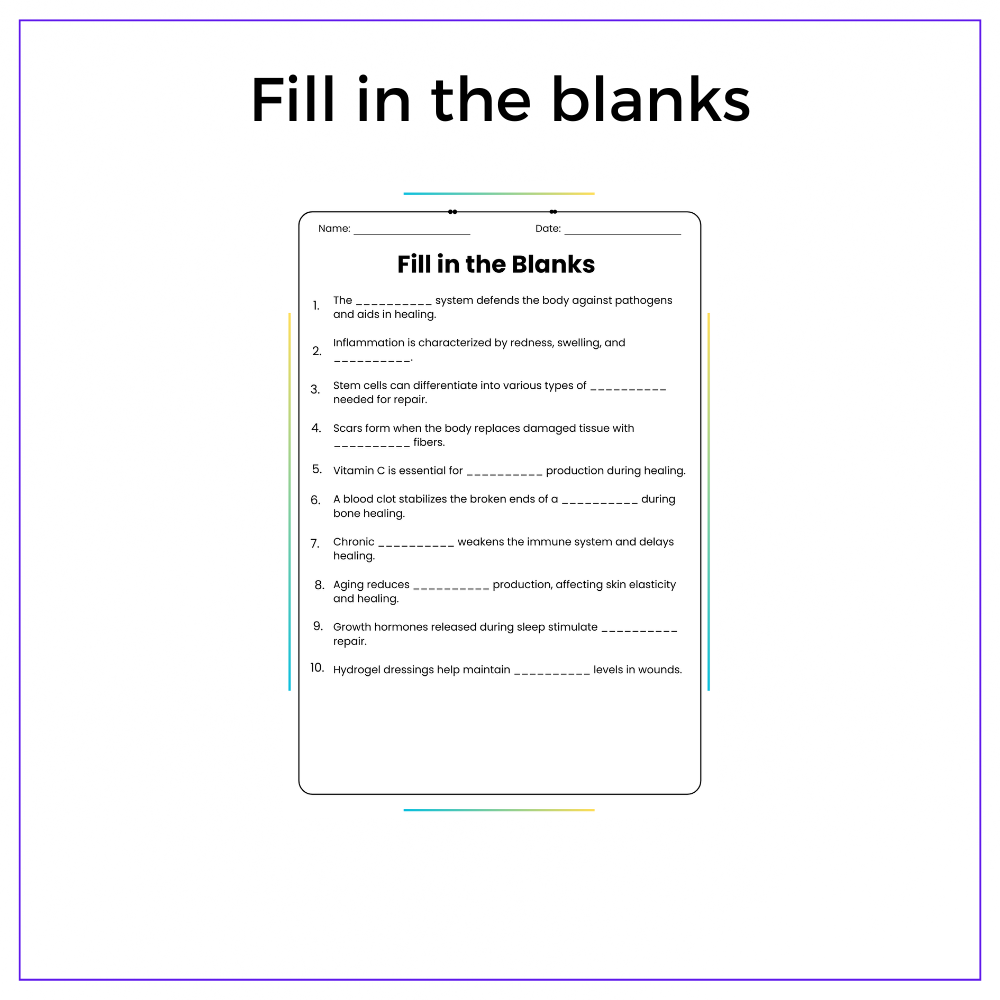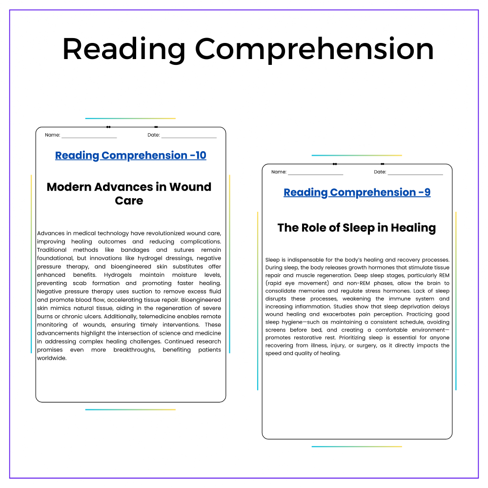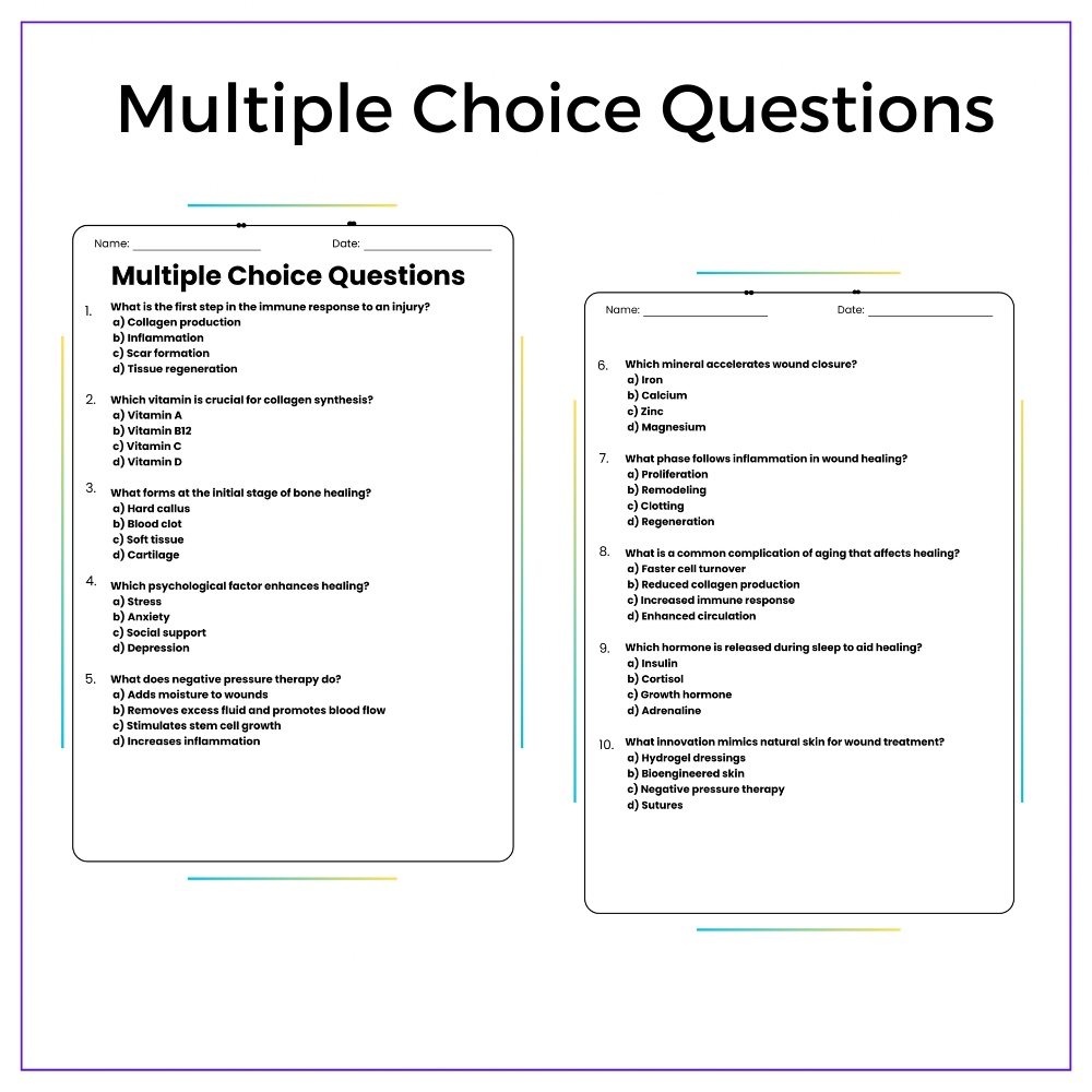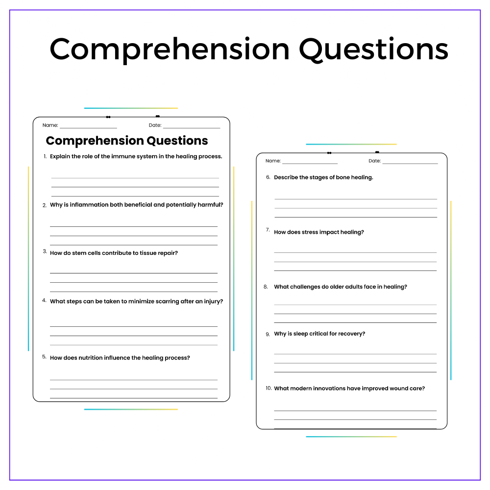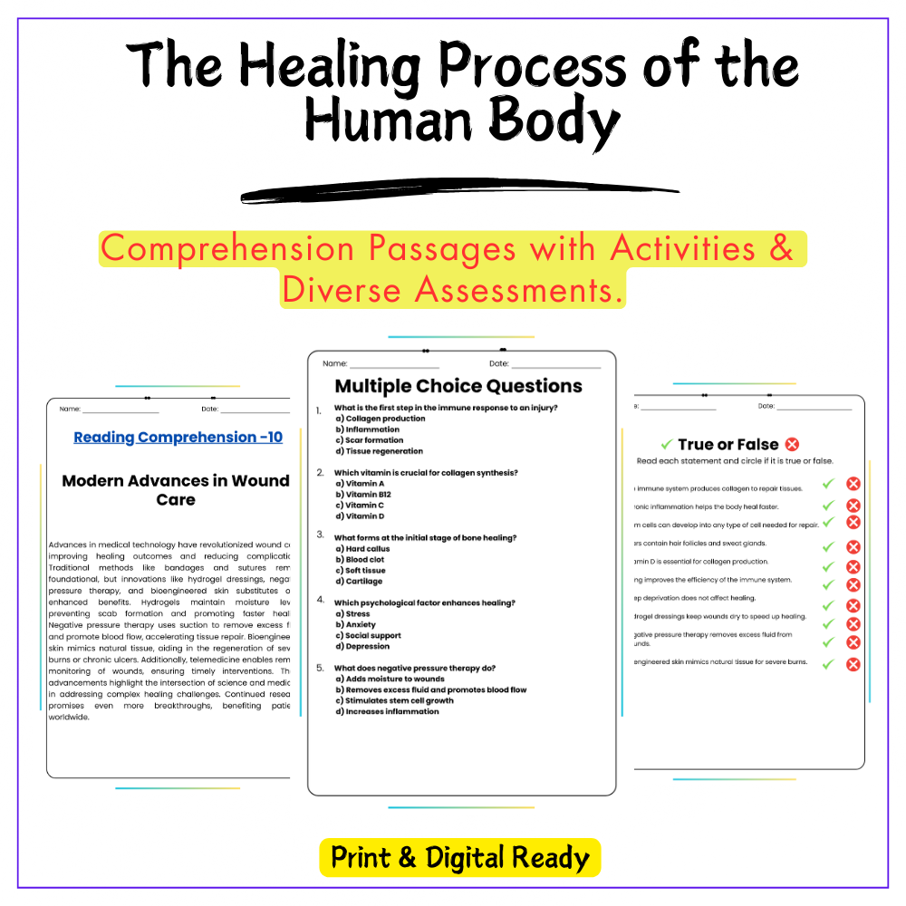 • Comprehension passages – Explore inflammation, clotting, tissue regeneration