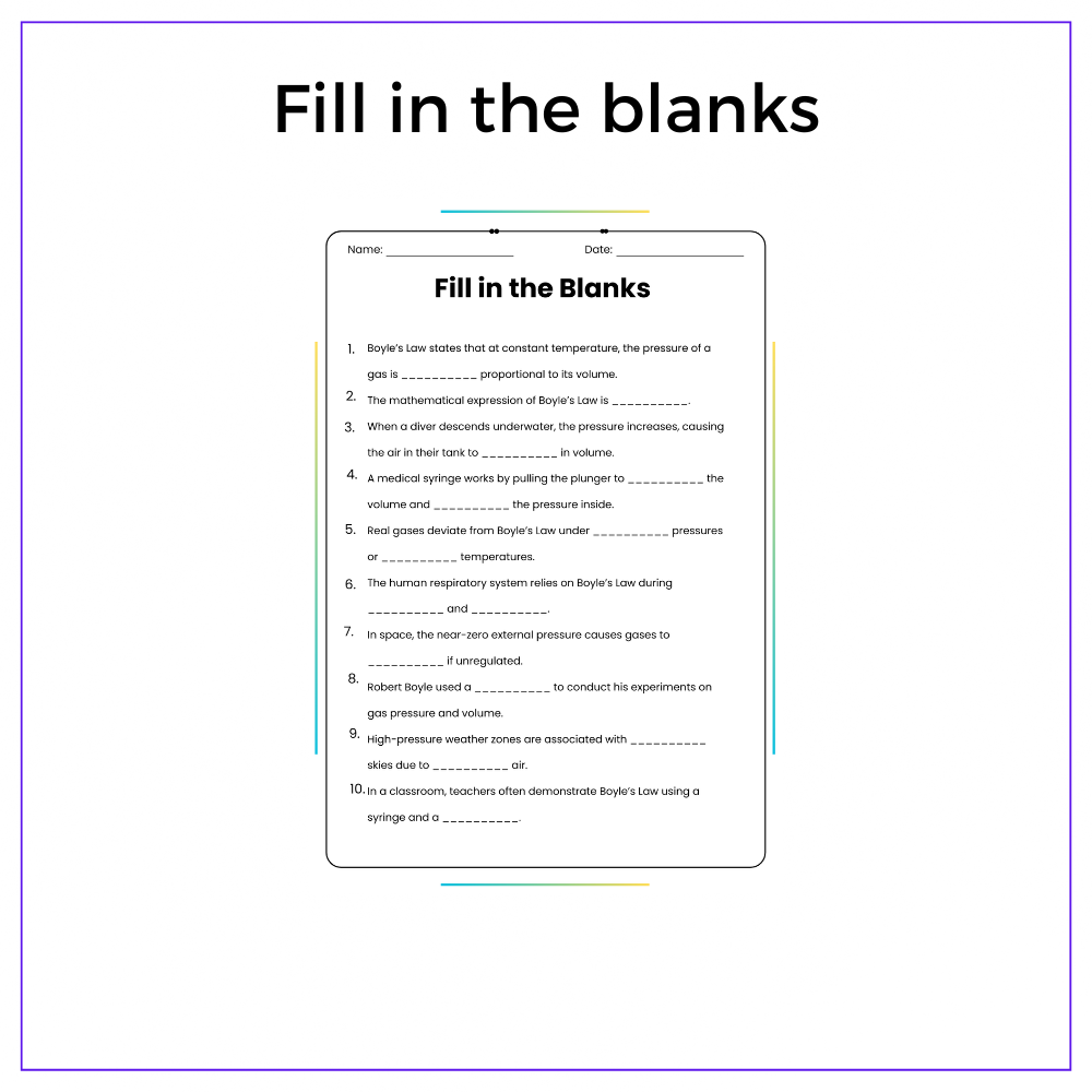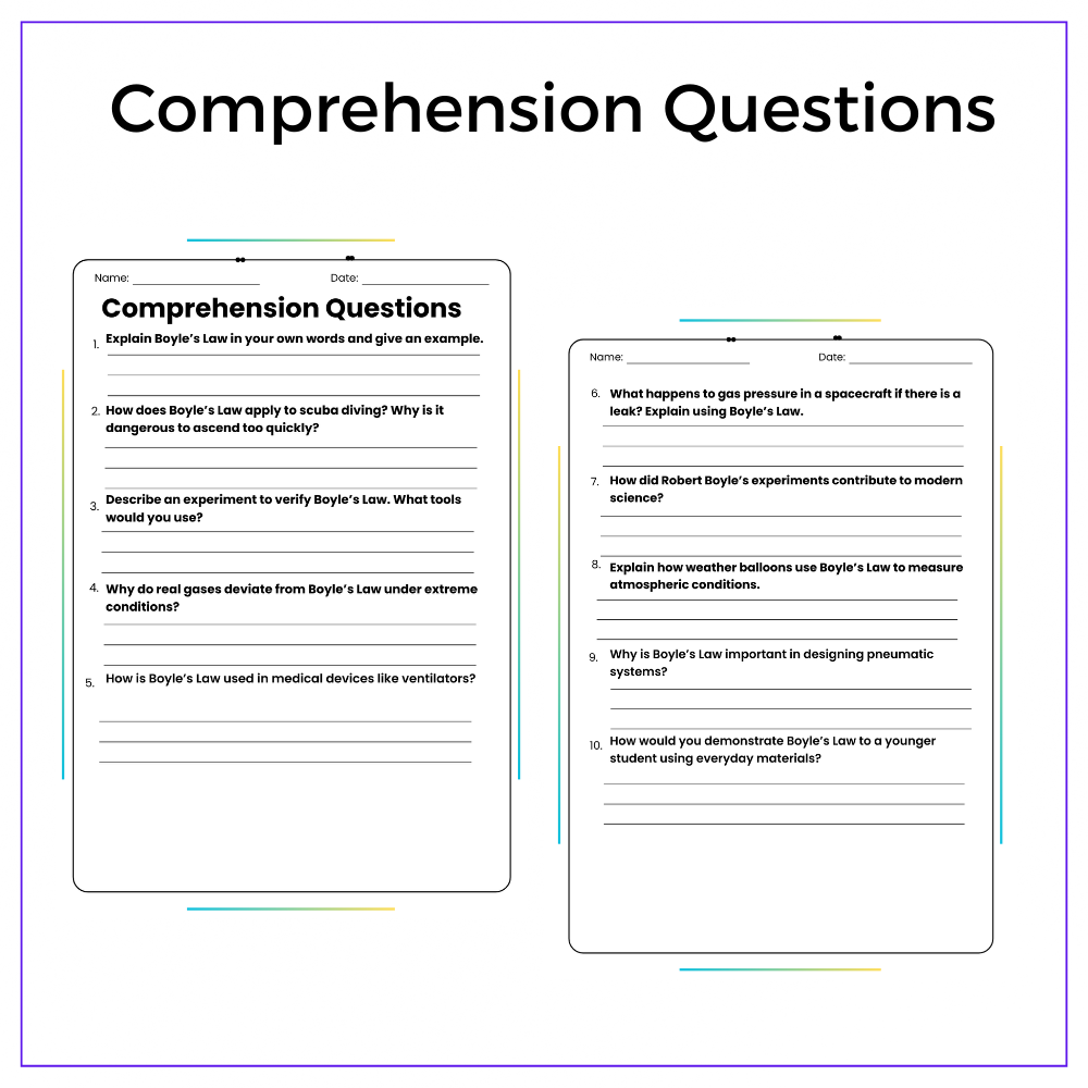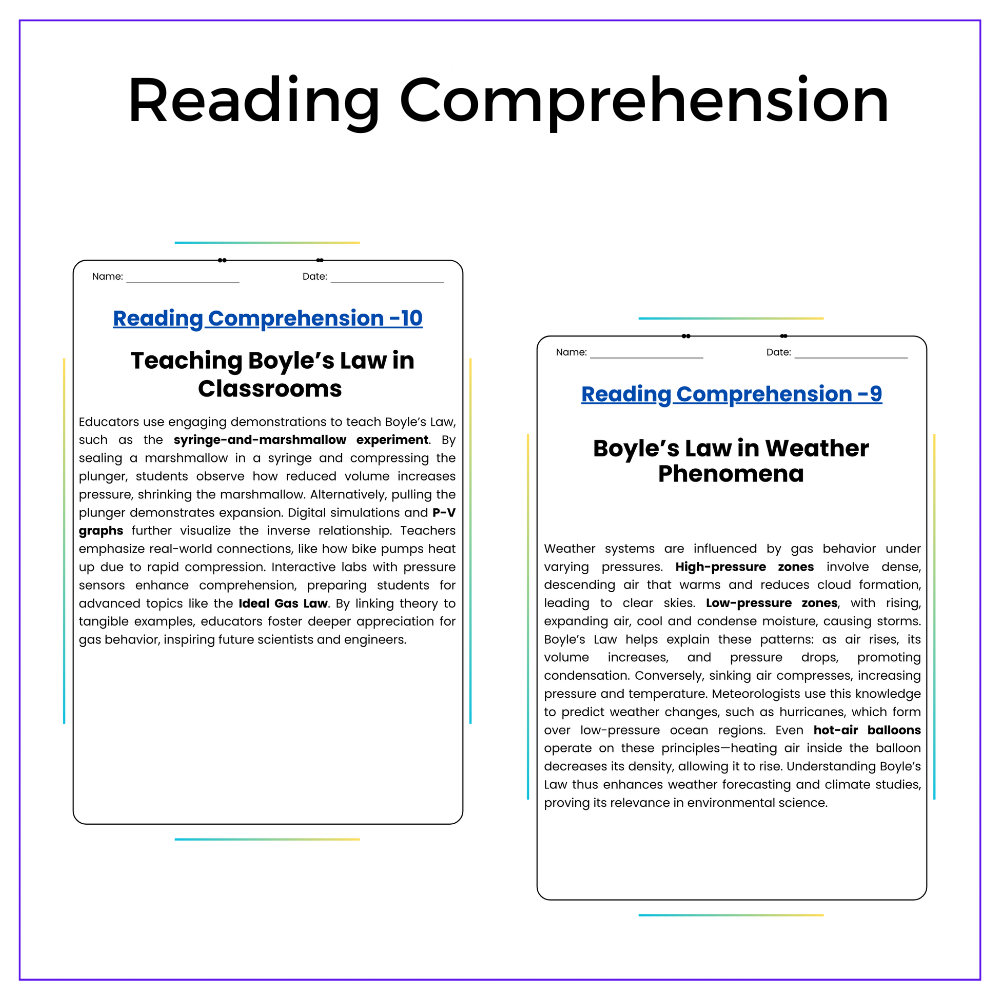 • Comprehension passages – Introduce Boyle’s Law and real-life applications