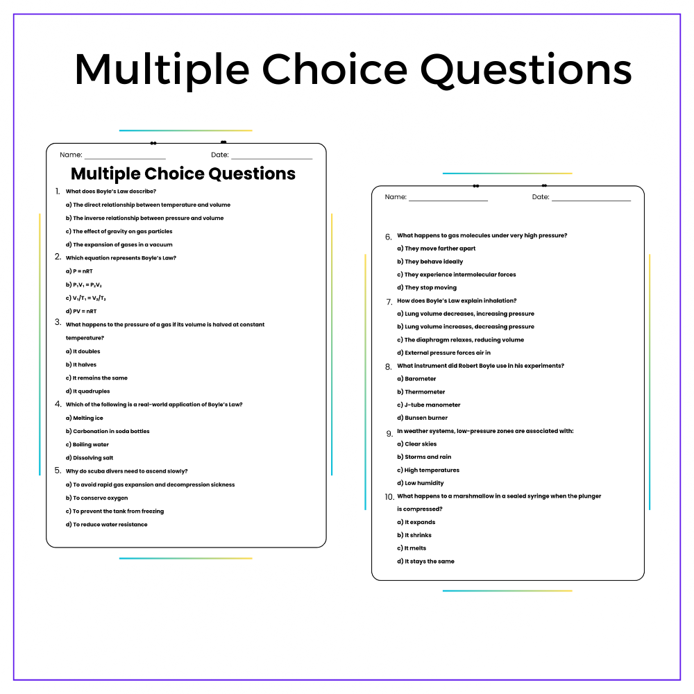 Watch the invisible world of gases come alive with The Behavior of Gases Under Pressure! This worksheet helps students understand Boyle’s Law in a fun, hands-on way—exploring how volume and pressure change in a closed system.