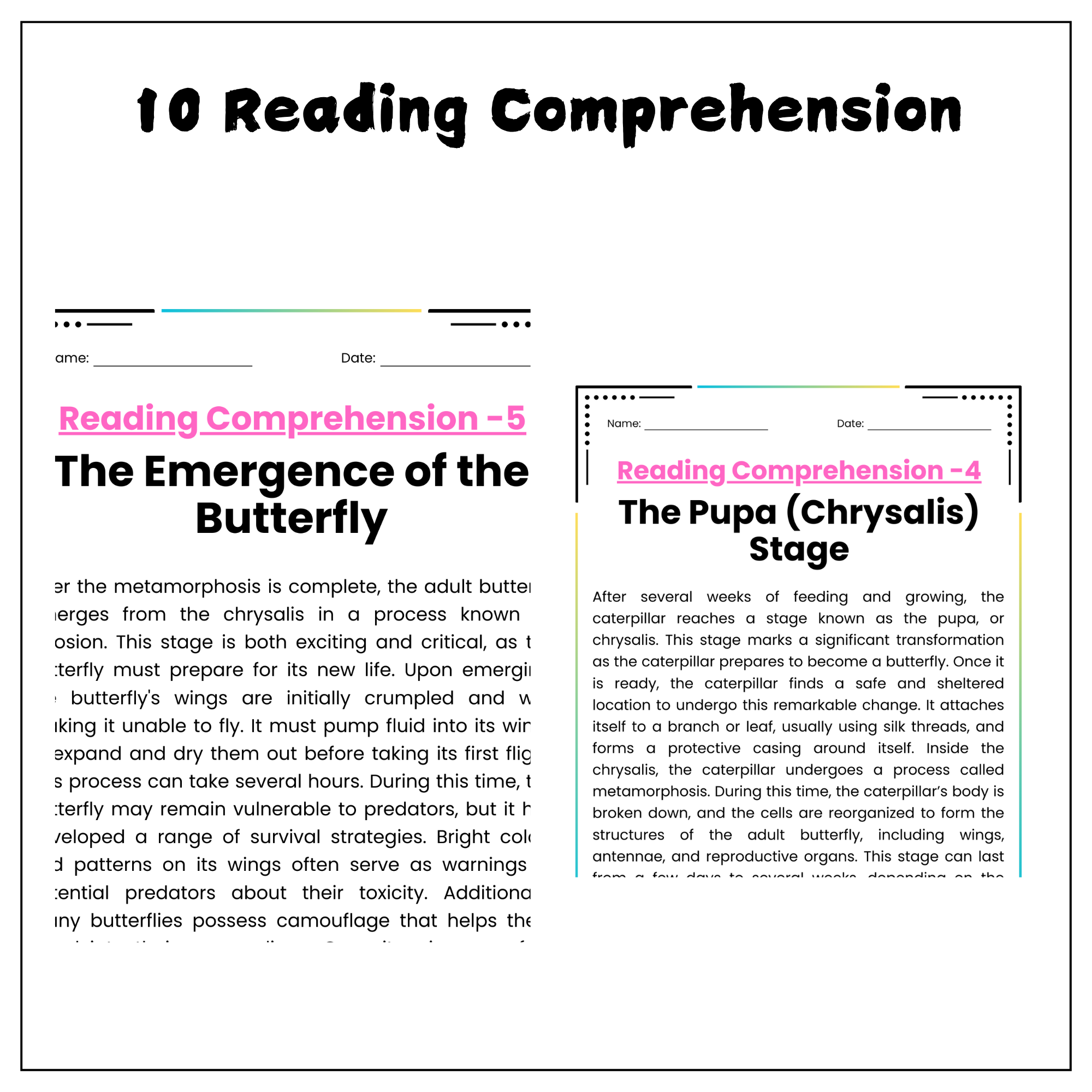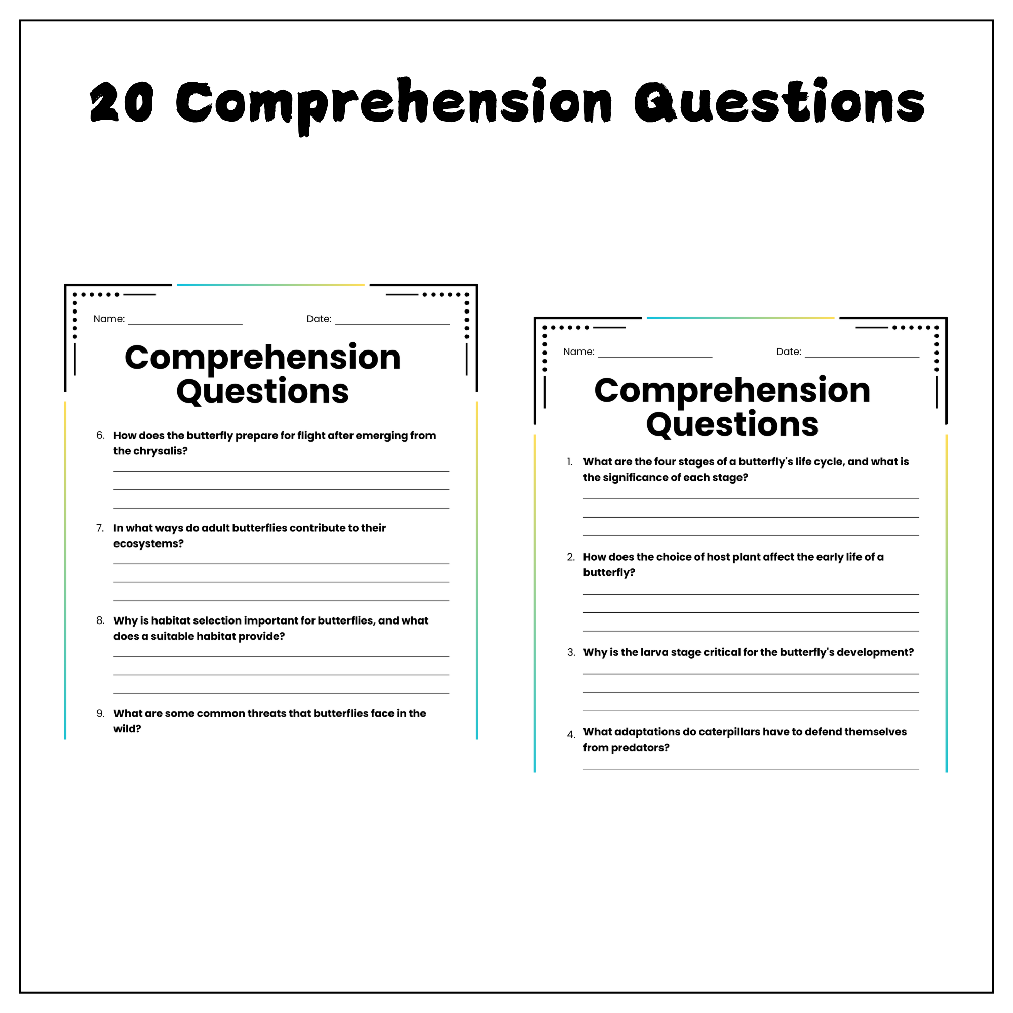 • Comprehension passages – Explain each stage of the butterfly’s life cycle