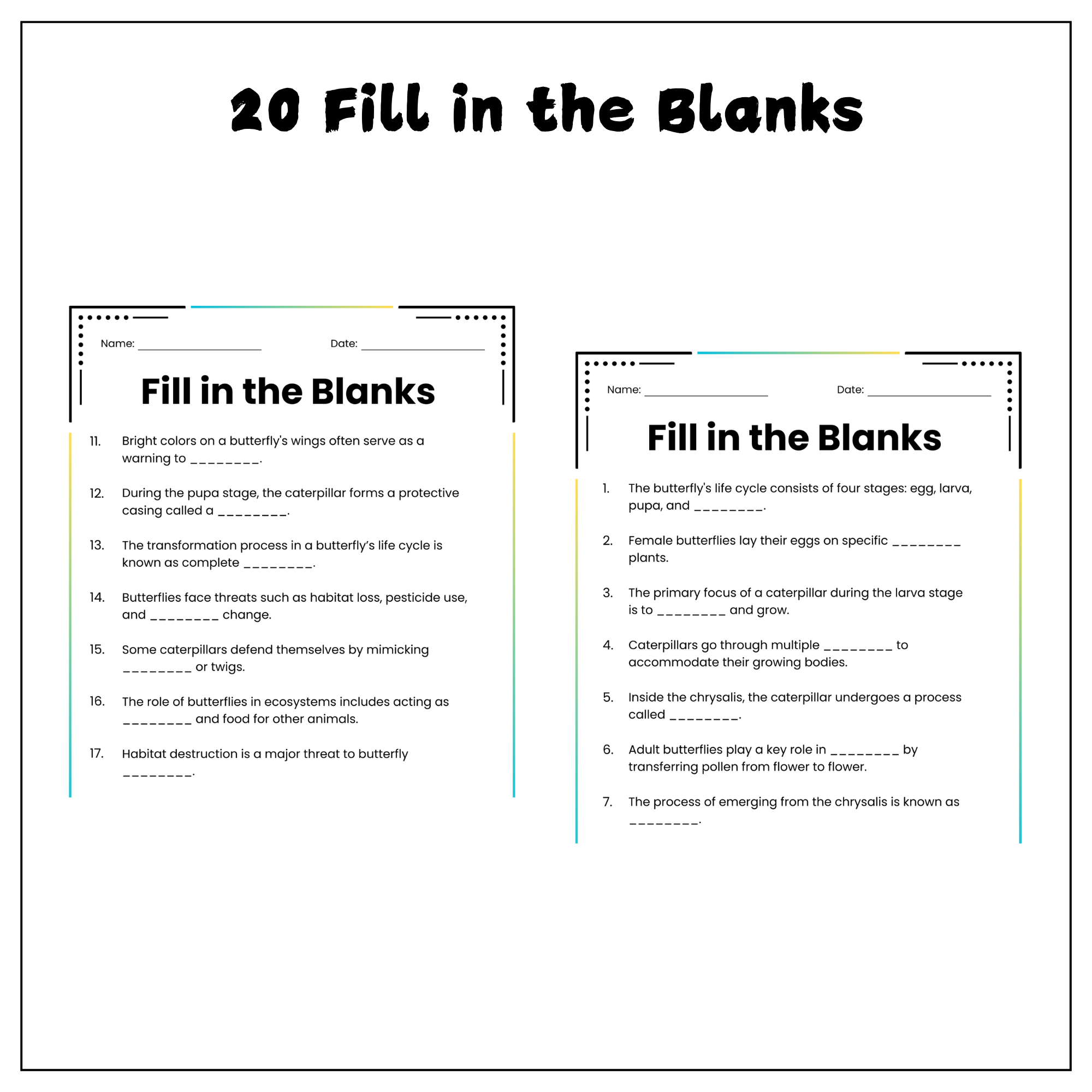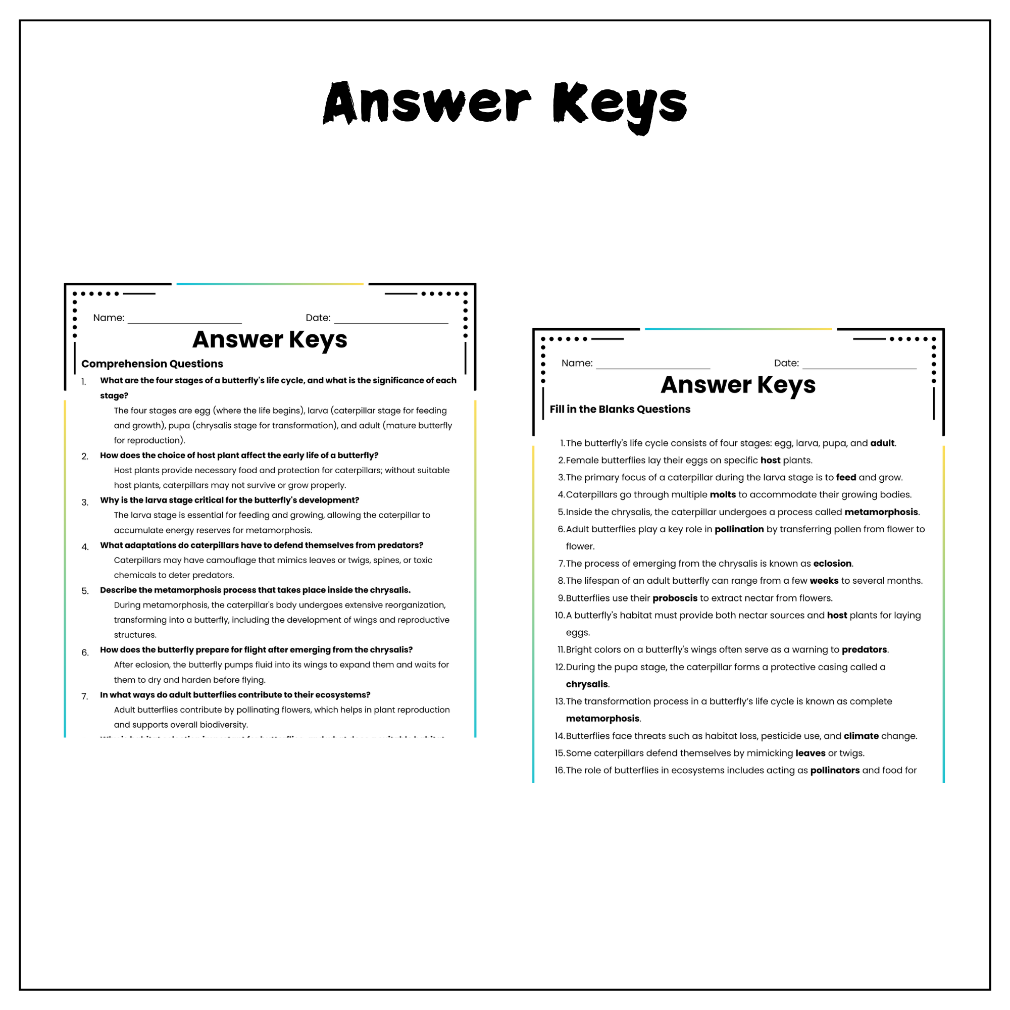 • Fill-in-the-blanks – Reinforce vocabulary like “chrysalis,” “metamorphosis,” and “caterpillar”