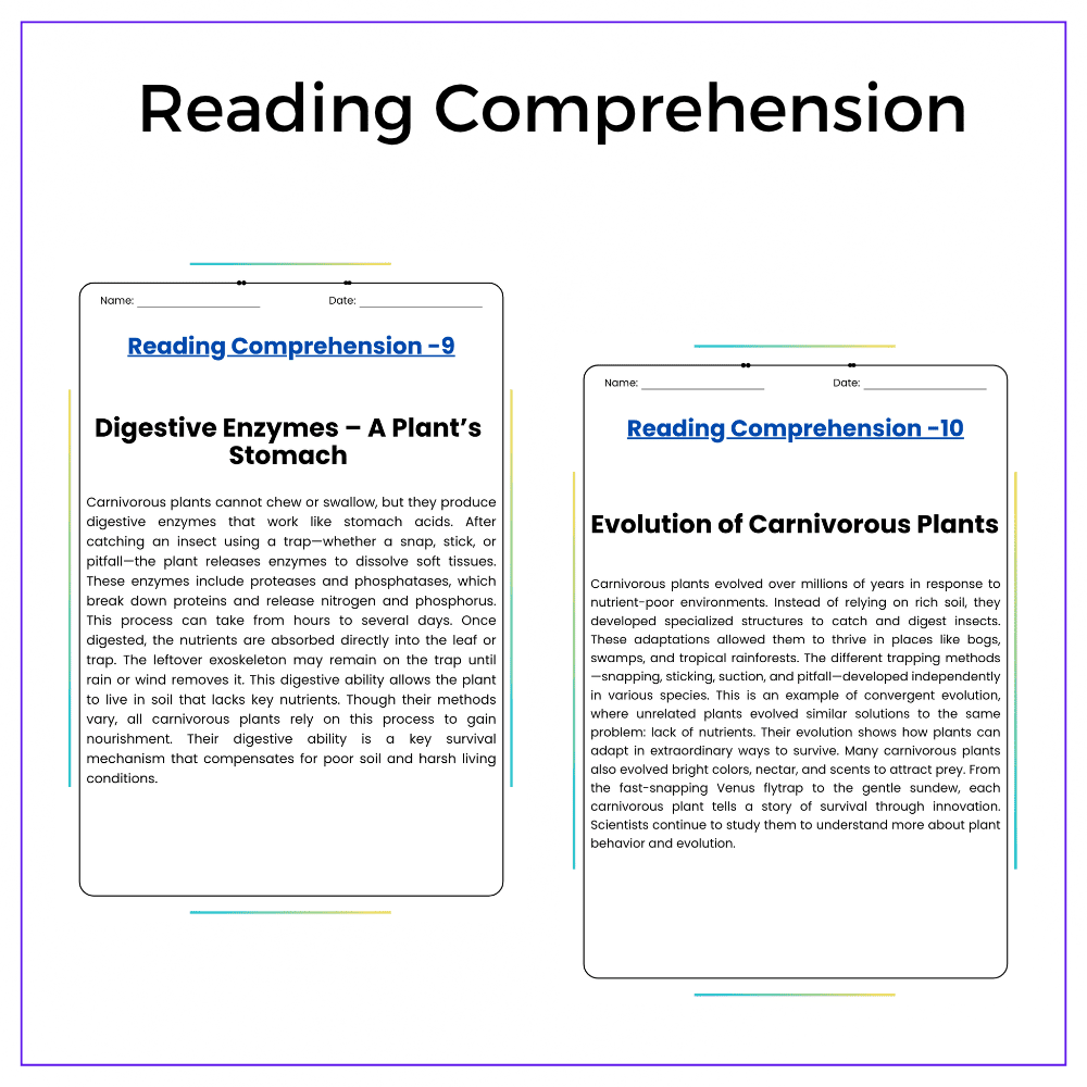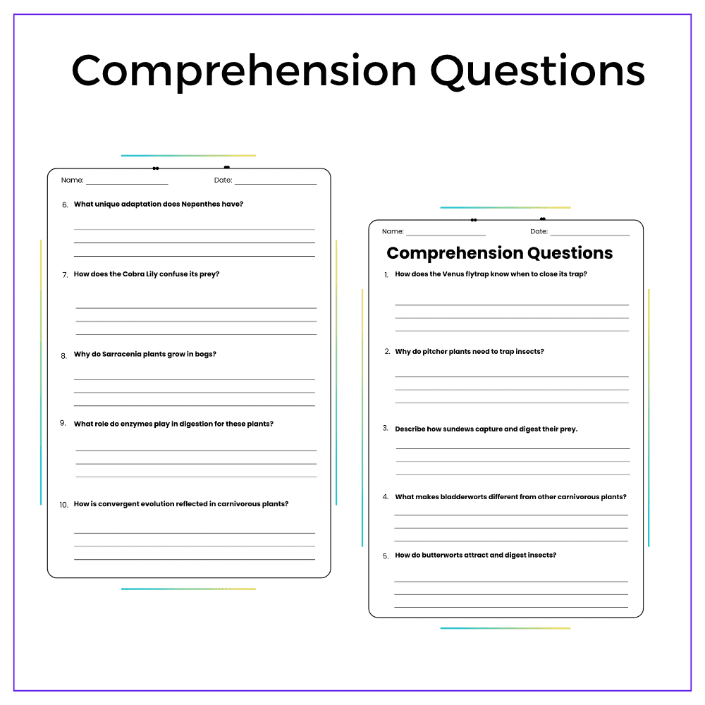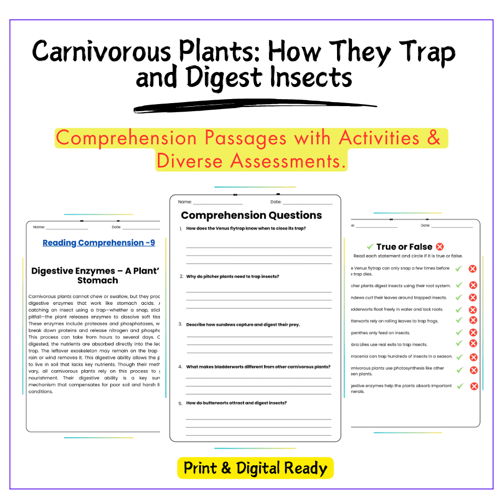 ✅ Comprehension passages – Explain how different carnivorous plants trap and digest prey