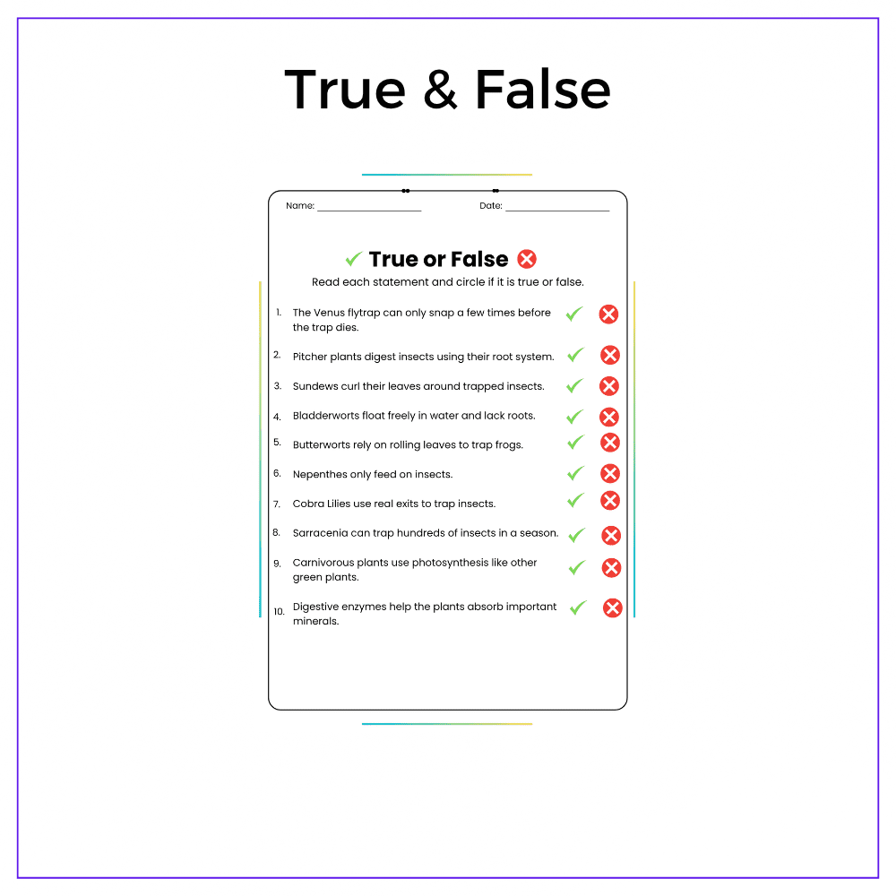 ✅ True & False exercises – Test knowledge of how and why carnivorous plants evolved