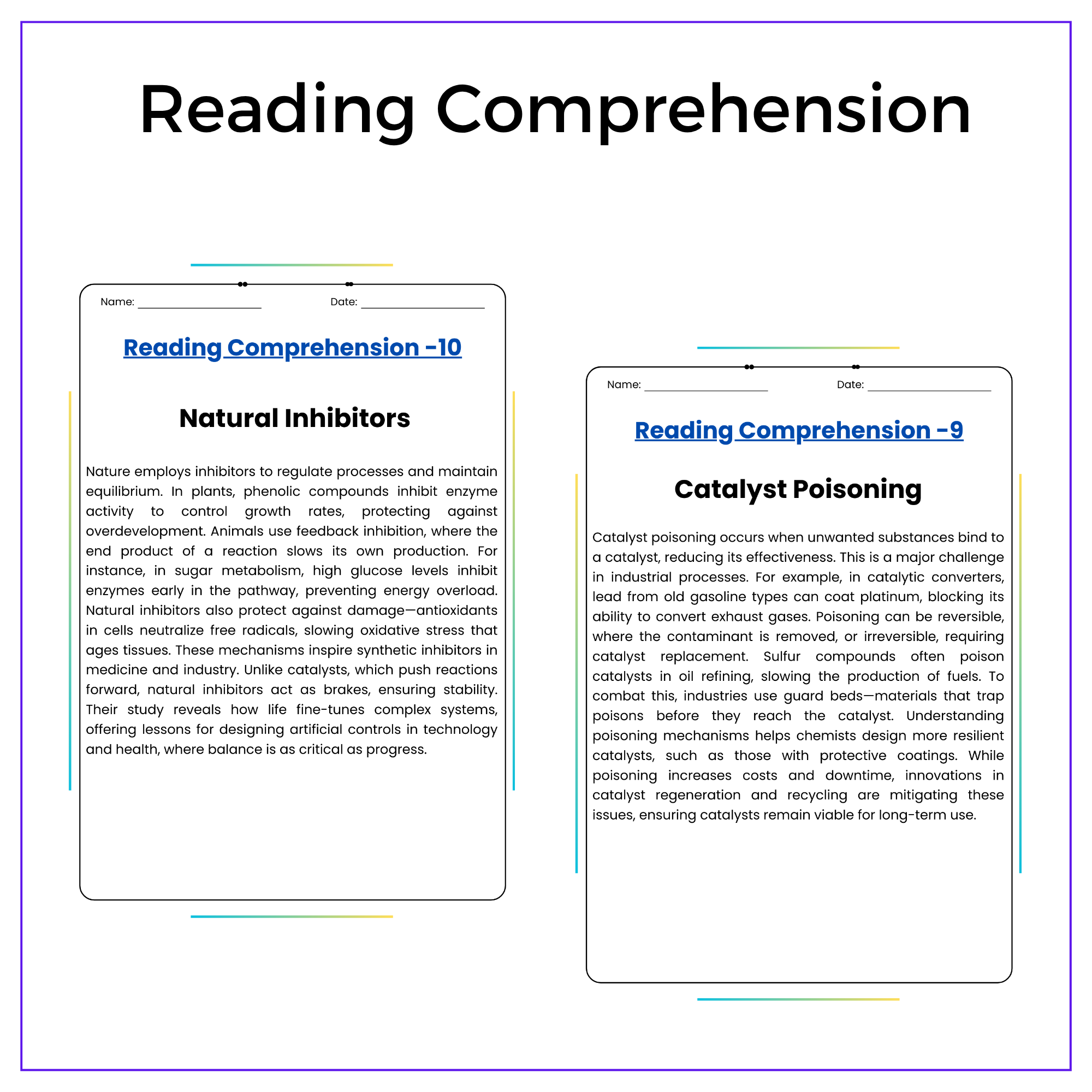 • Reading Passages – Define catalysts and inhibitors with real-life examples (enzymes, food preservatives)
