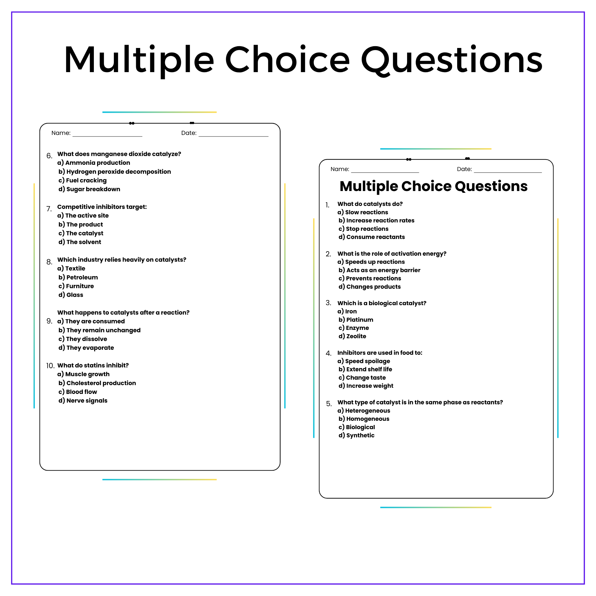 Catalysts & Inhibitors Worksheet