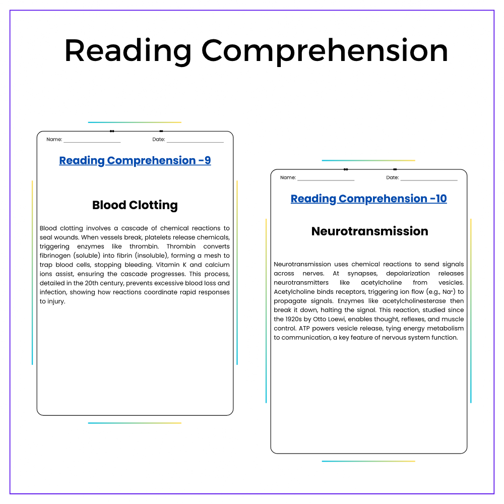 • Comprehension passages – Explain how metabolism relies on chemical change