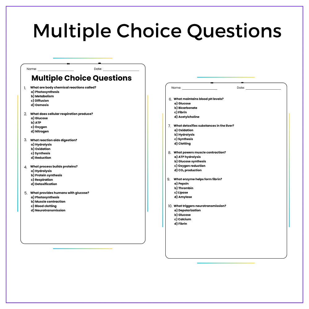 Bring chemistry to life with this Chemical Reactions in the Human Body worksheet! Designed for grades 4–8, this resource explores how everyday bodily functions like breathing, digestion, and muscle movement depend on chemistry.
