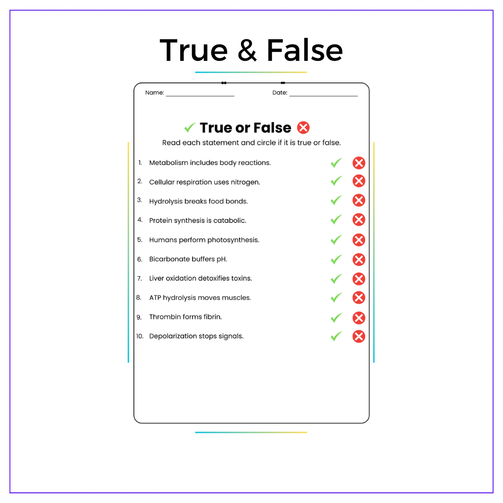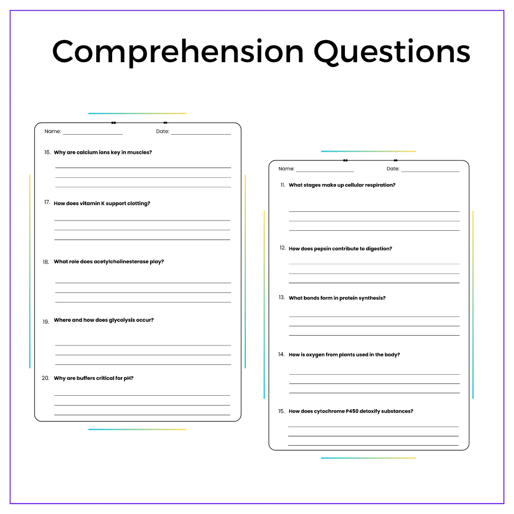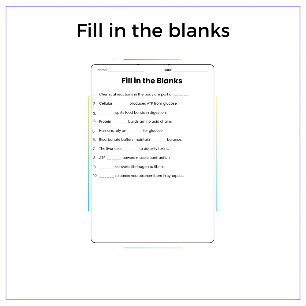 • Fill-in-the-blanks – Reinforce terms like “reaction,” “enzyme,” and “ATP”