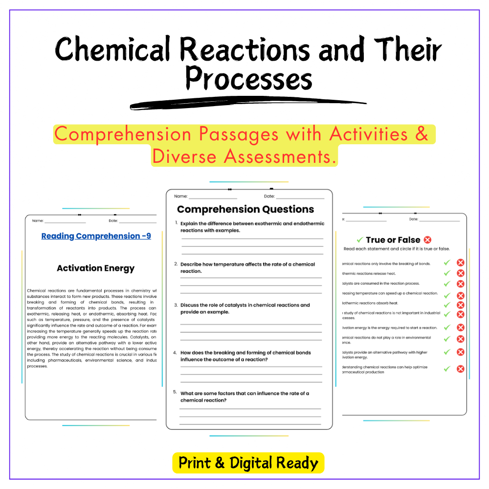 This worksheet helps students dive into chemistry with the interactive Chemical Reactions and Their Processes worksheet! Designed for grades 4–8, this resource introduces the basics of chemical reactions, including reactants, products, and evidence of change, through engaging and easy-to-understand formats.