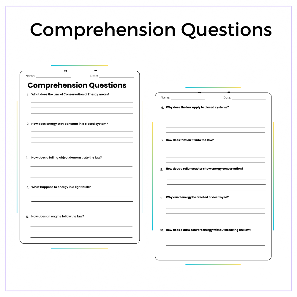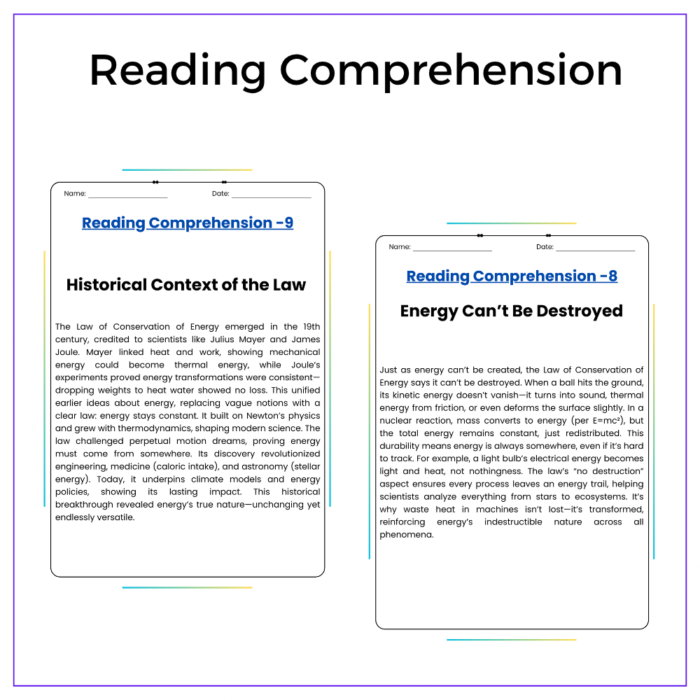 • Comprehension passages – Explain the Law of Conservation of Energy in easy terms