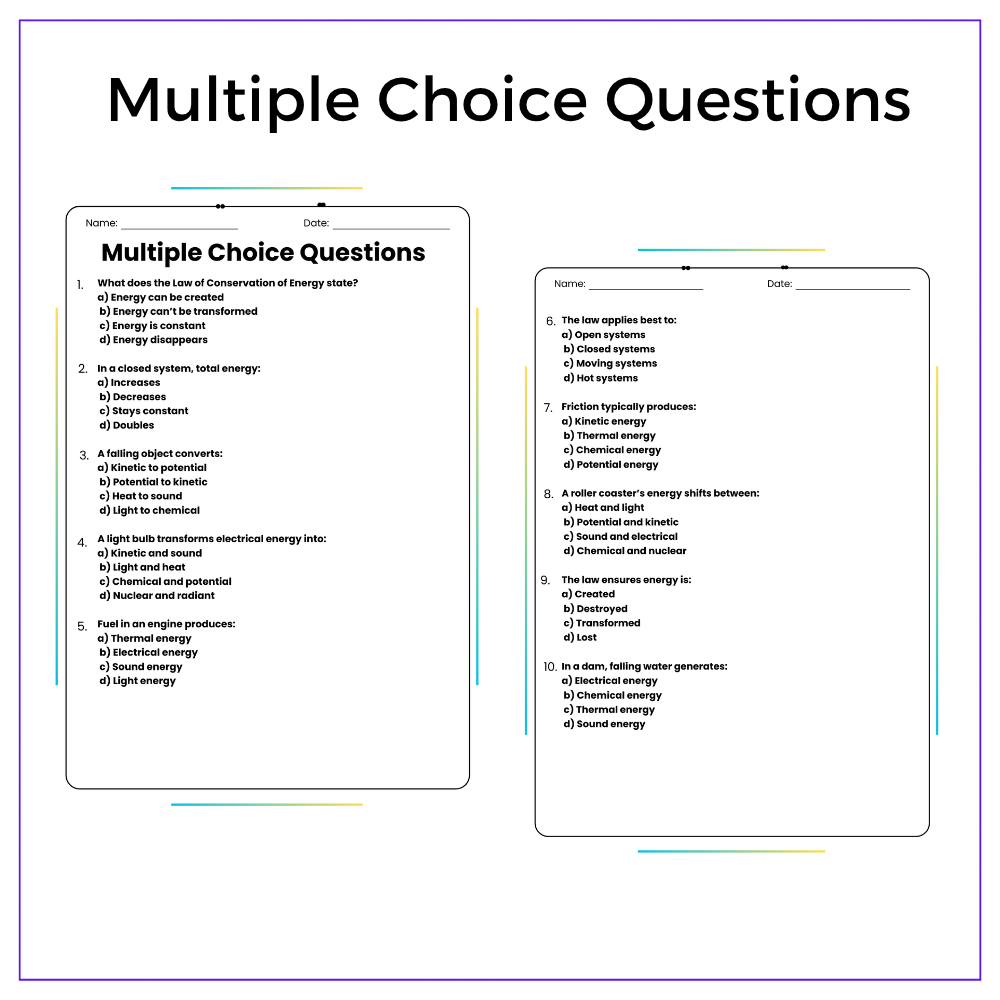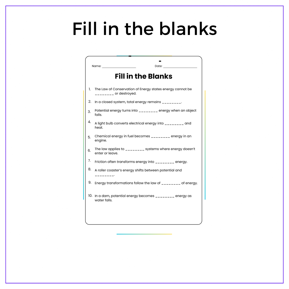 Discover the law of energy conservation with our worksheet for grades 4-8! Learn physics in this engaging lesson!