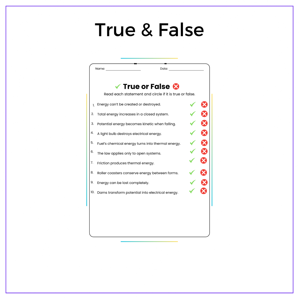Help your students discover that energy can neither be created nor destroyed with this exciting Law of Conservation of Energy worksheet! Designed for grades 4–8, this resource explains one of the most important principles of science in a clear, accessible way.