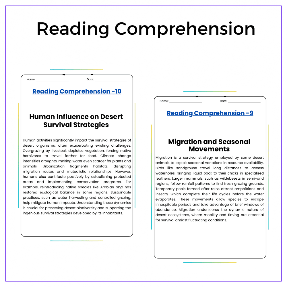 This versatile worksheet is perfect for individual assignments, group discussions, homeschooling, or extra practice, ensuring every student understands how deserts support life. With comprehension passages, fill-in-the-blanks, multiple-choice questions (MCQs), true/false exercises, and problem-solving challenges, students stay engaged while reinforcing key concepts. The included class activities promote creativity and collaboration.