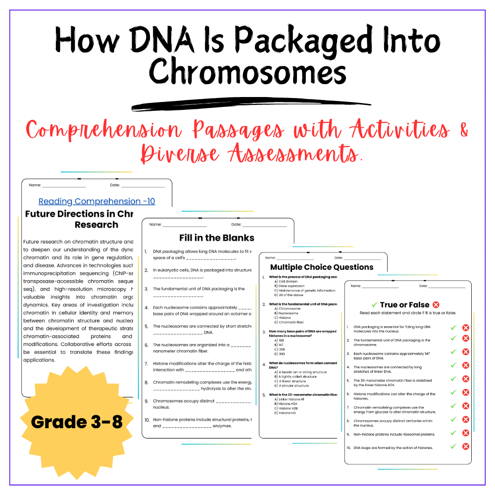 How does all that DNA fit into a single cell? This worksheet explores the structure of chromosomes and how DNA wraps around proteins to stay compact. Perfect for helping students visualize invisible processes in cell biology.
