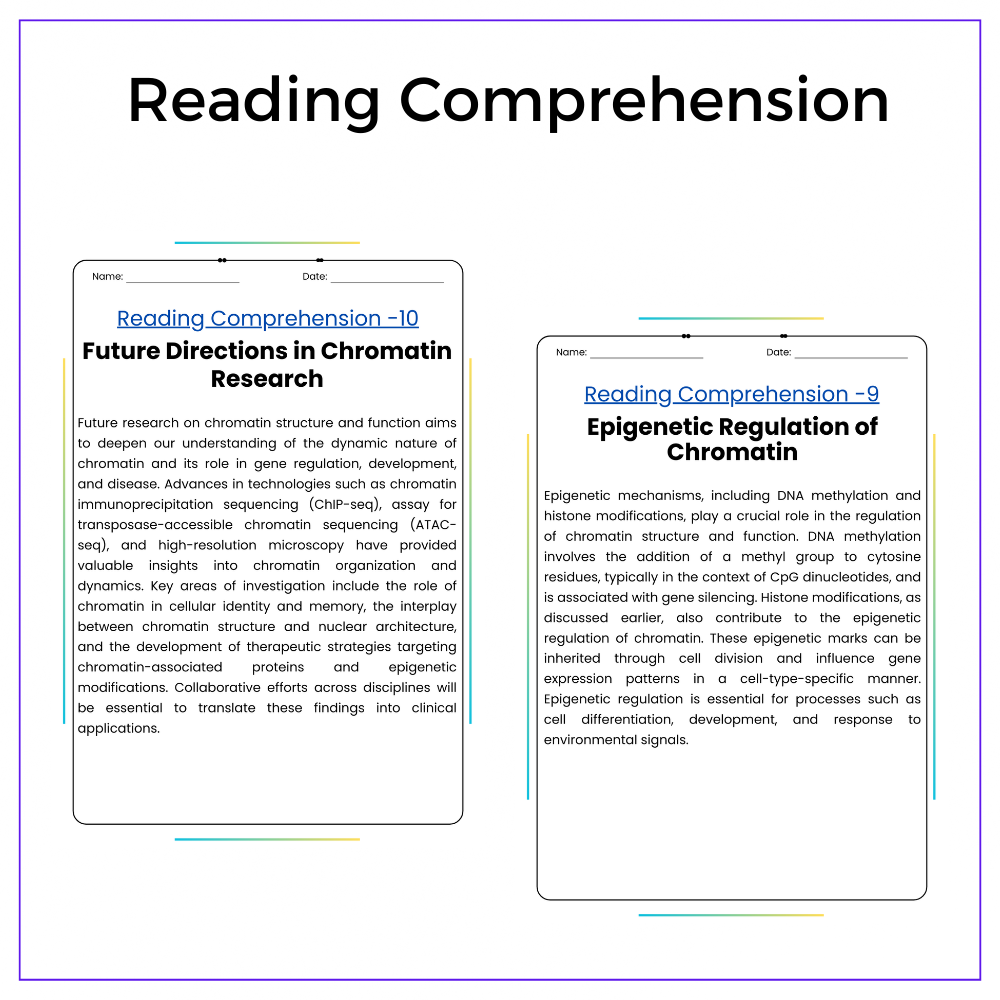 • Comprehension passages – Describe nucleosomes, histones, and chromatin