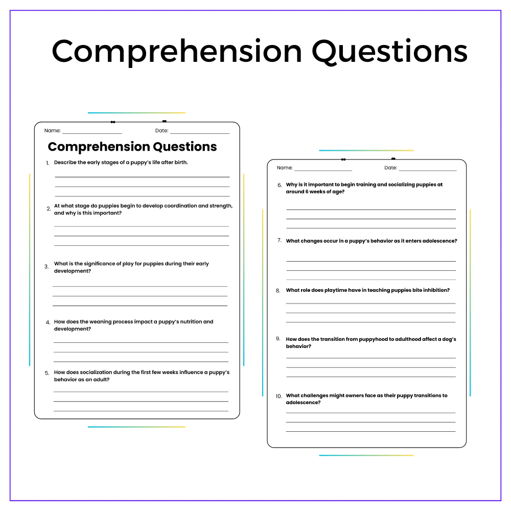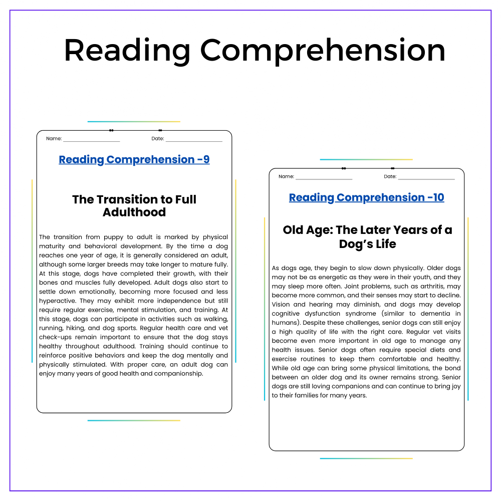 • Comprehension passages – Clear explanations of a dog’s life cycle