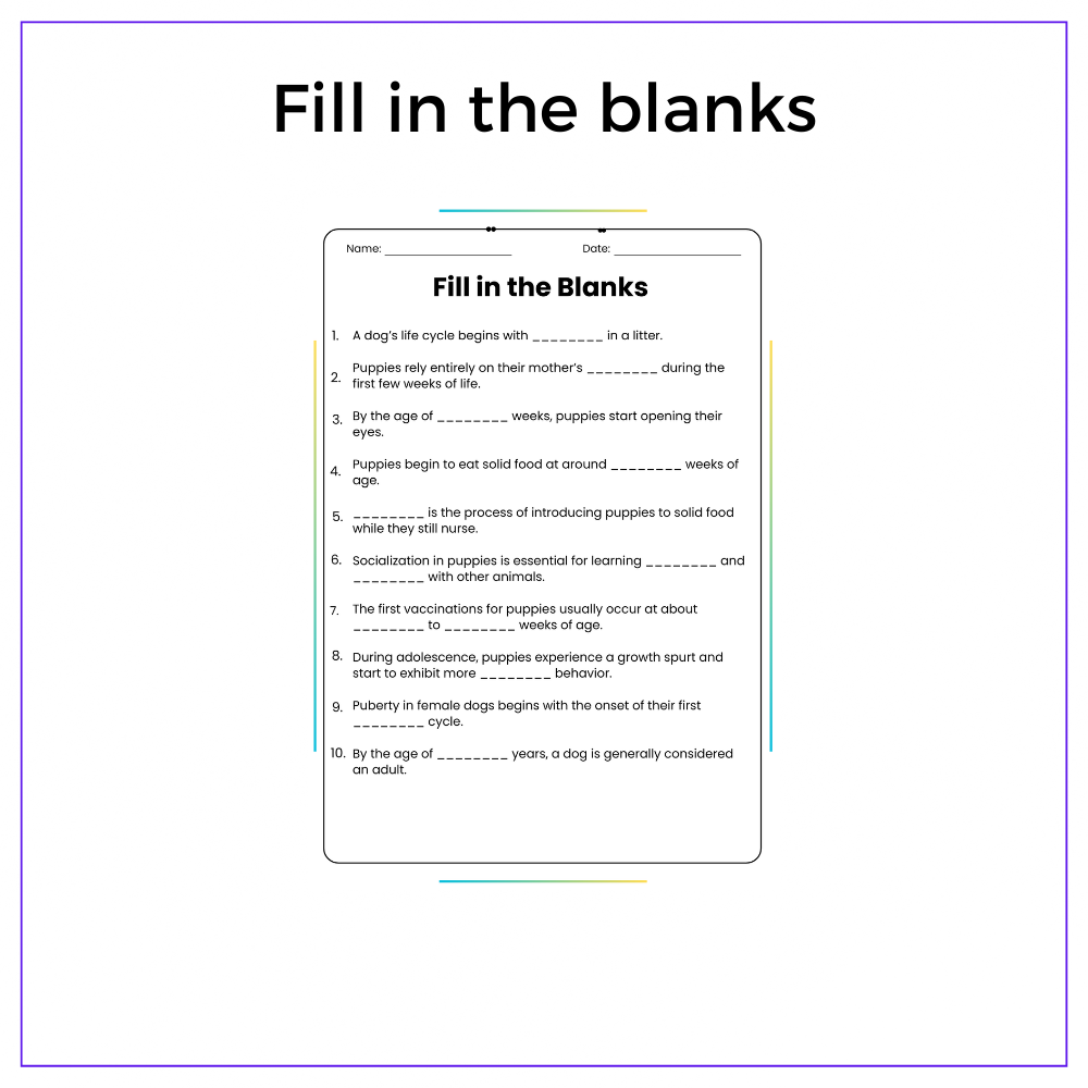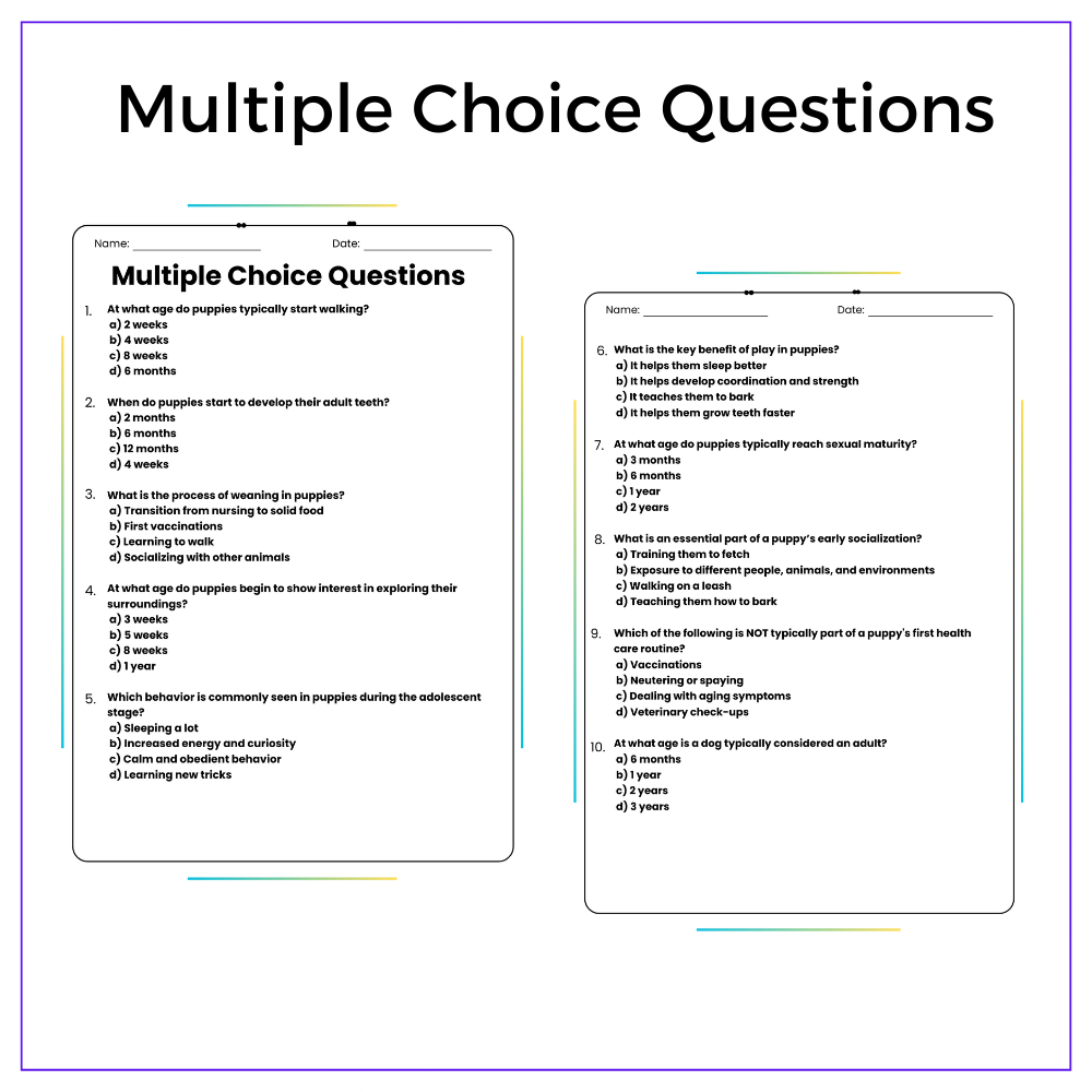 This versatile worksheet is perfect for individual assignments, group discussions, homeschooling, or extra practice, ensuring that every student gains a solid grasp of how dogs grow and mature. With a mix of comprehension passages, fill-in-the-blanks, multiple-choice questions (MCQs), true/false exercises, and problem-solving challenges, students will stay actively engaged while reinforcing key concepts. The included class activities spark curiosity and encourage collaborative learning.