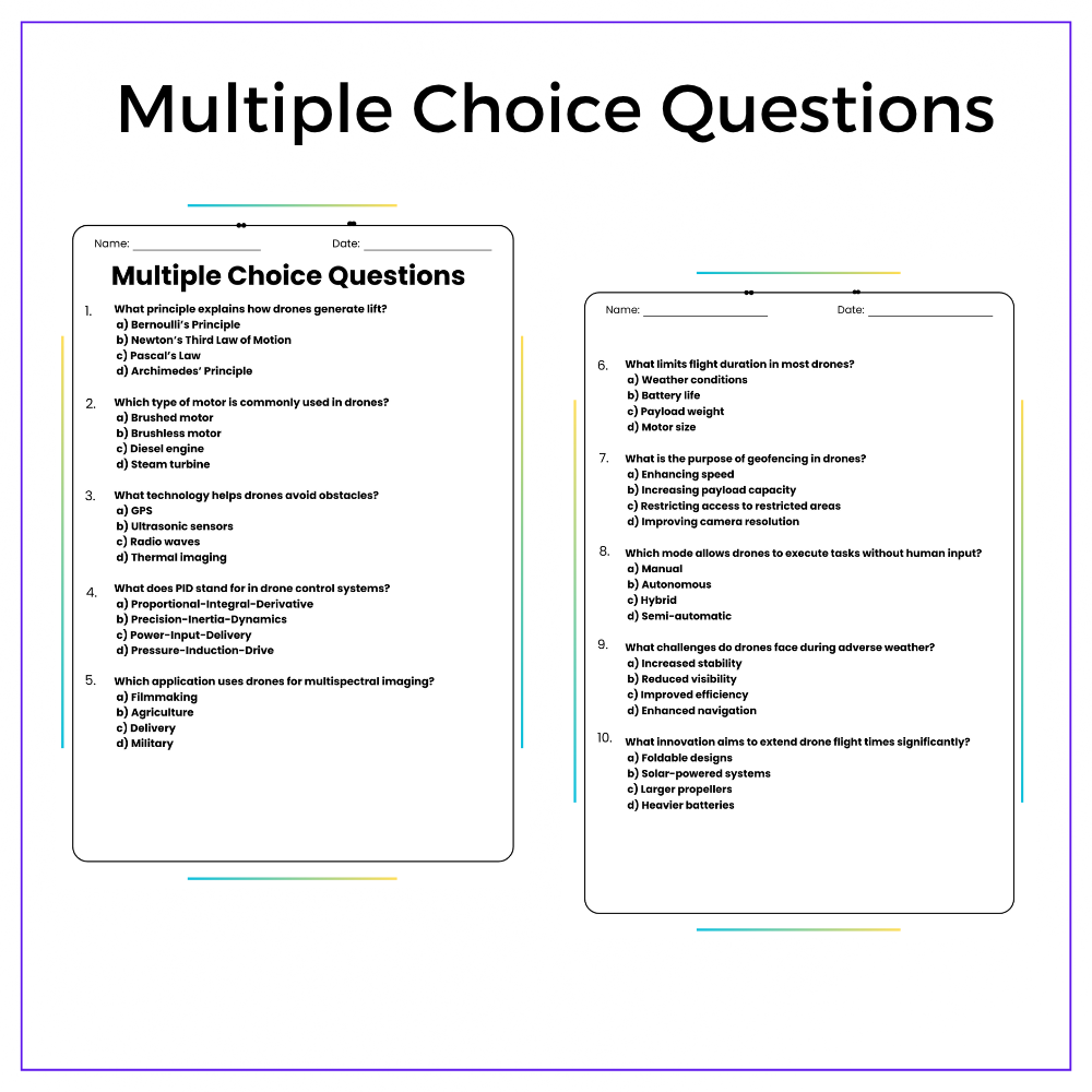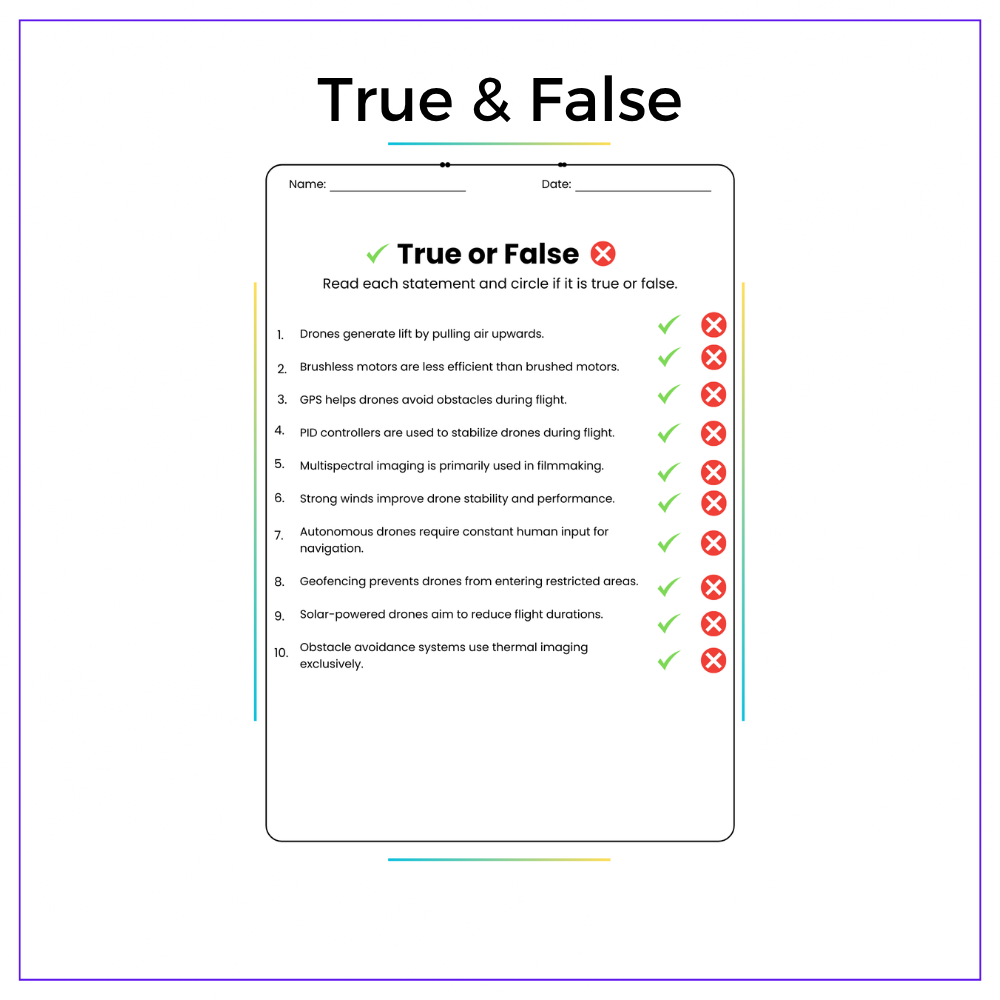 This worksheet helps your students soar into the science of aviation with this interactive The Mechanics of Drone Flight worksheet! Designed for grades 4-8, this resource explores how drones lift off, stay balanced, and navigate using sensors and rotors—all explained in a student-friendly way through fun, interactive tasks.