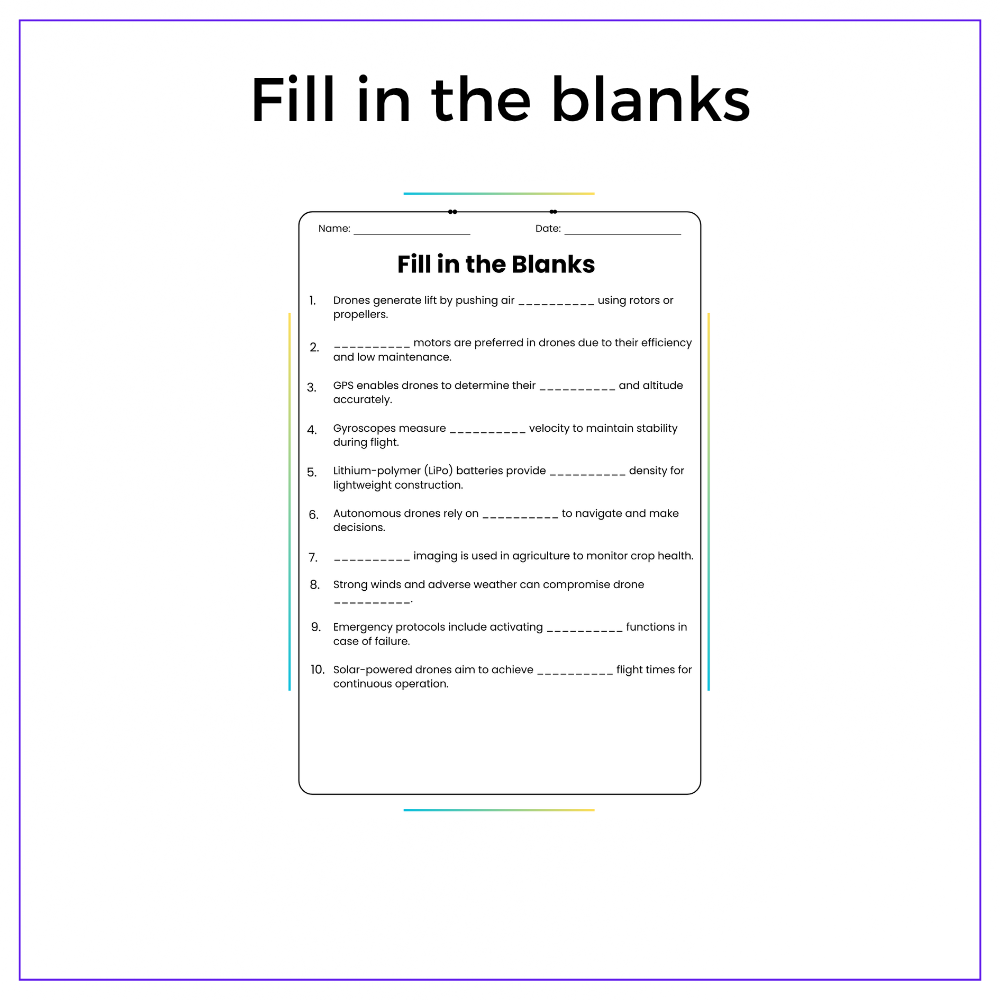 • Fill-in-the-blanks – Reinforce key flight and physics terms