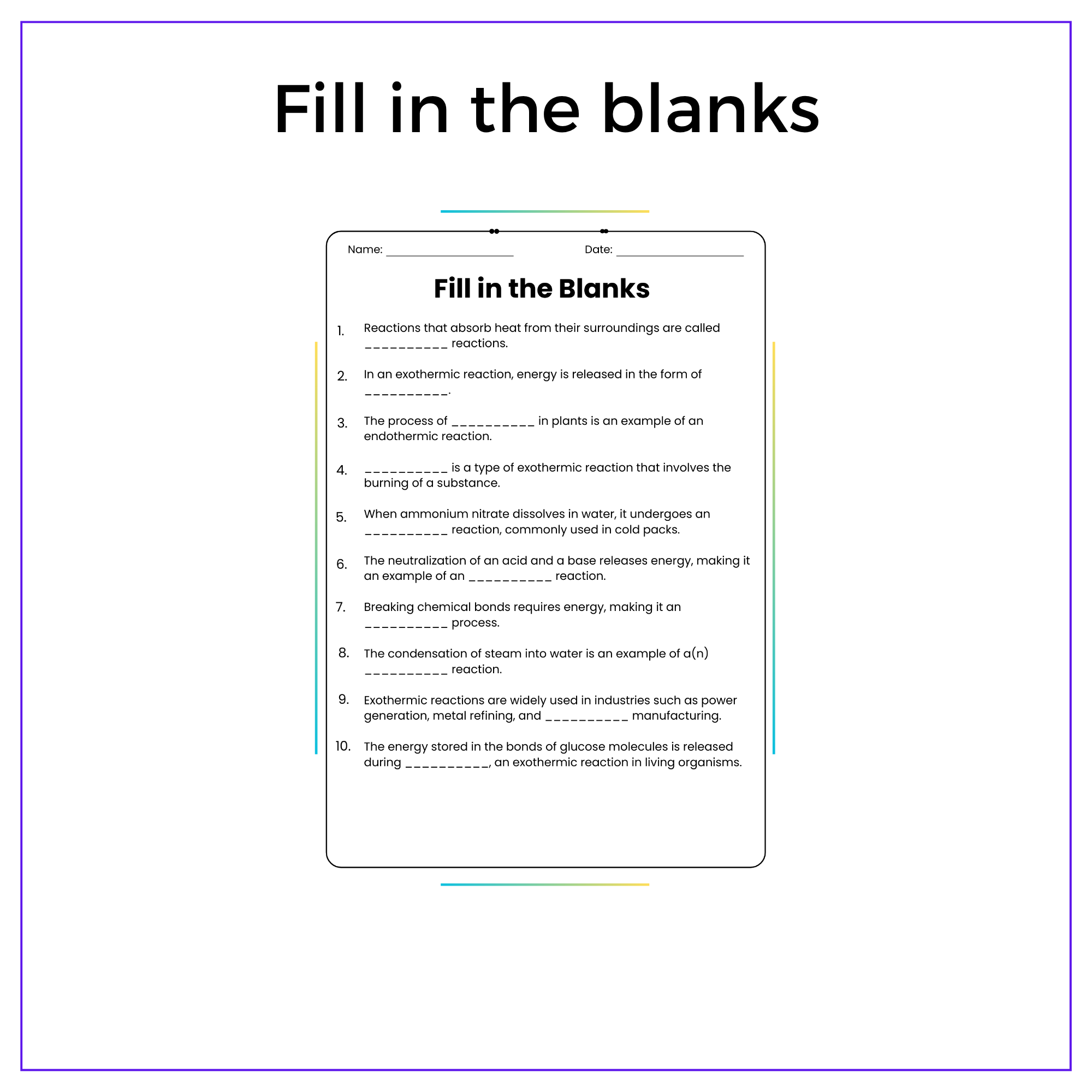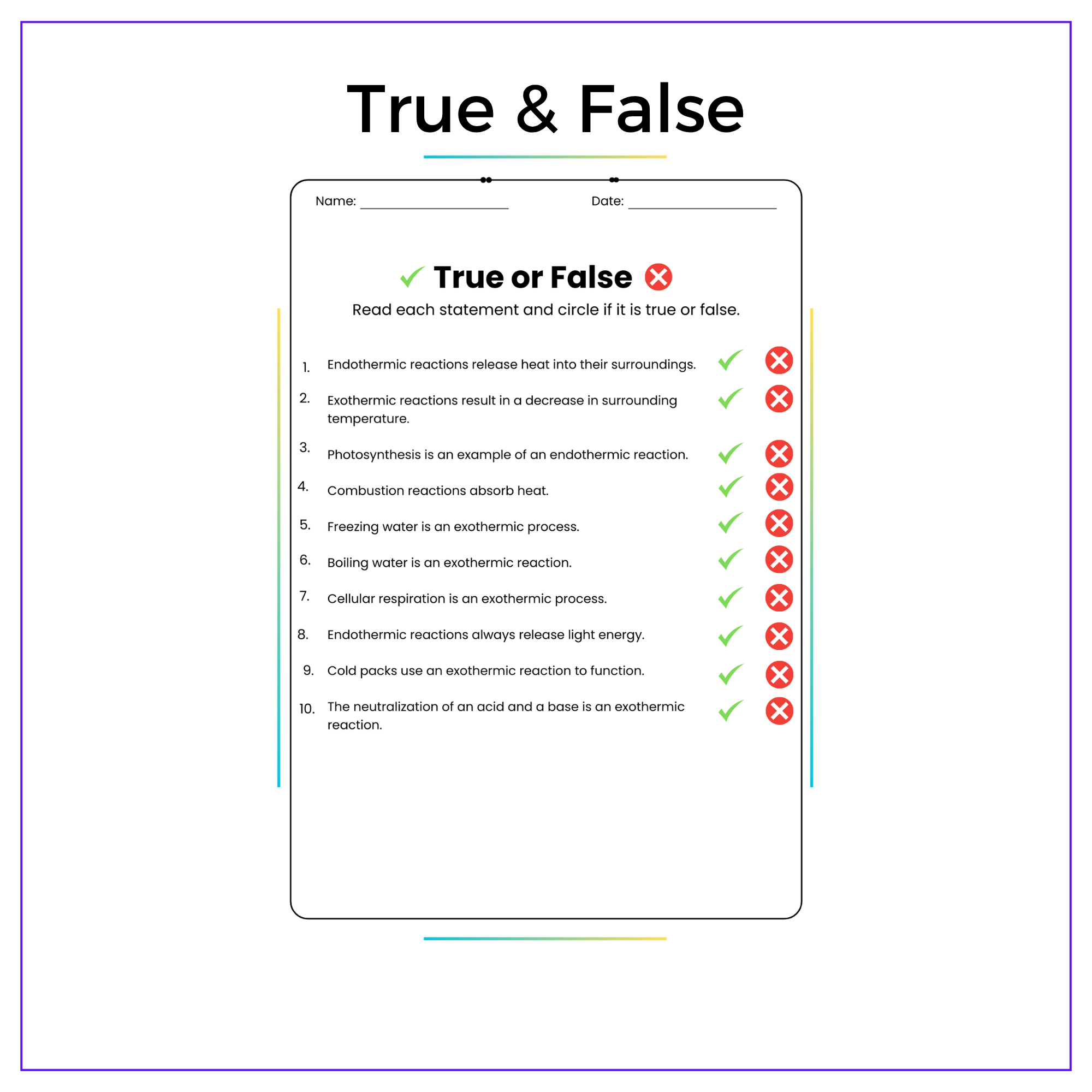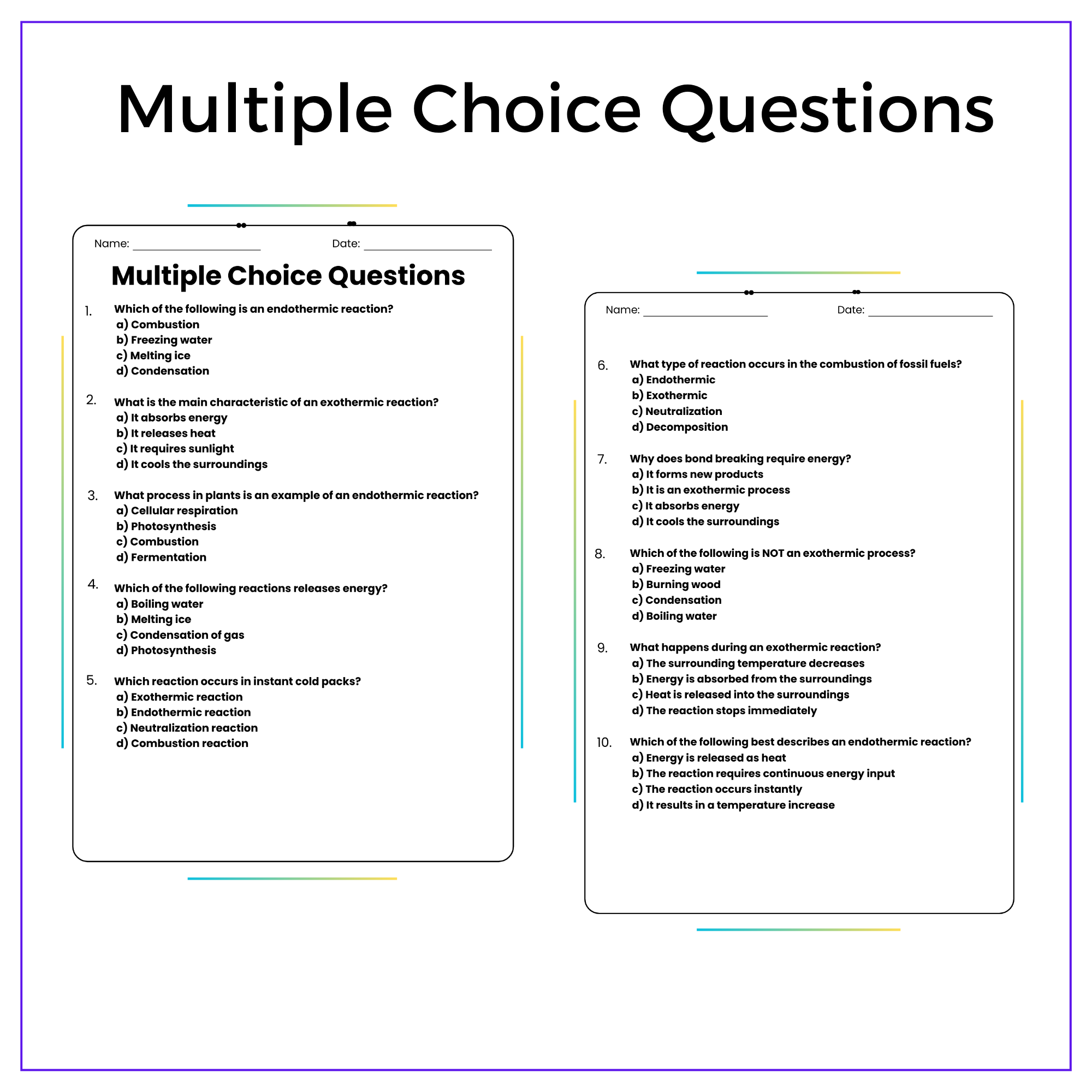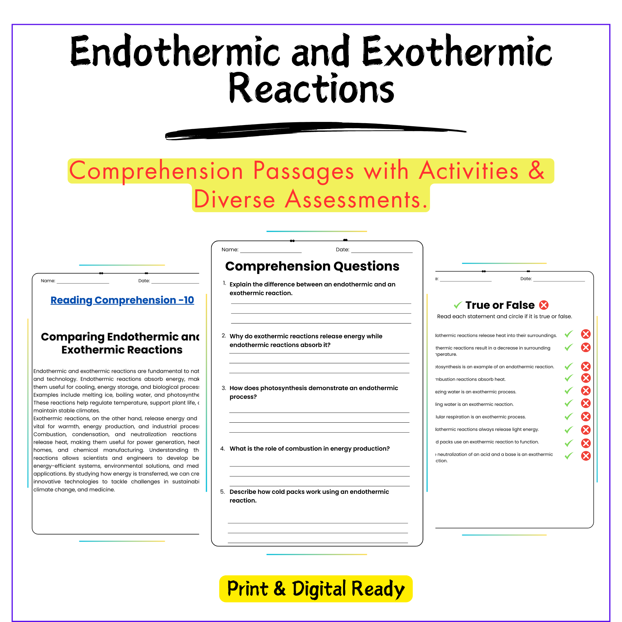 This worksheet helps your students understand heat energy in chemistry with this interactive Endothermic and Exothermic Reactions worksheet! Designed for grades 4–8, this resource explains how some reactions absorb heat while others release it, using real-life examples and fun visual learning.