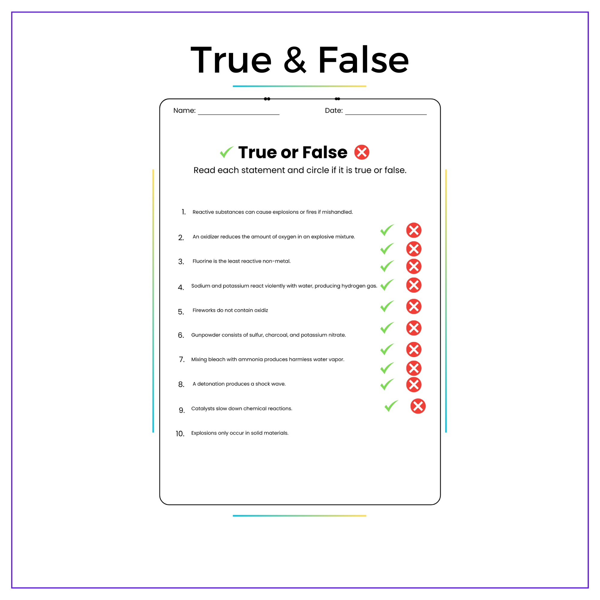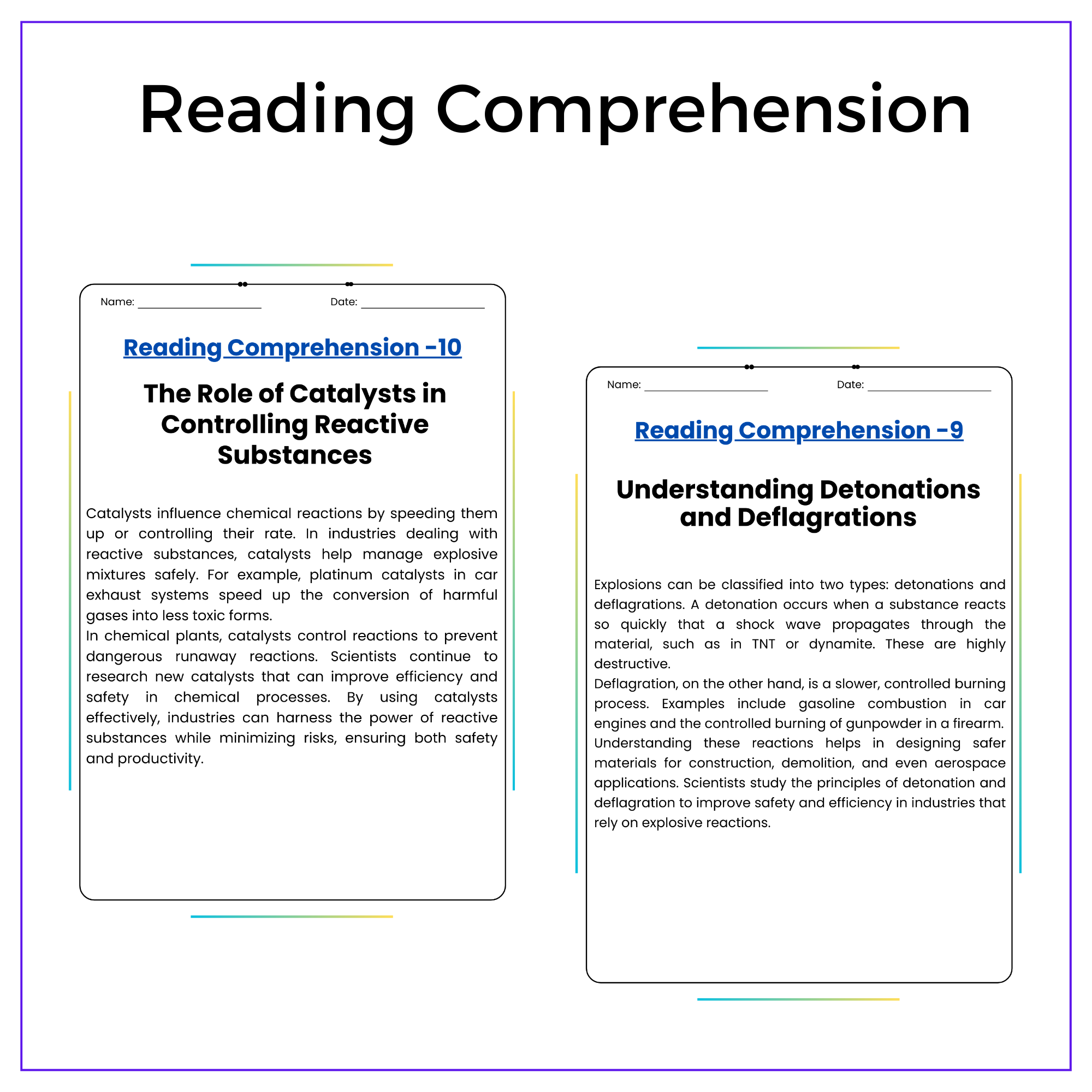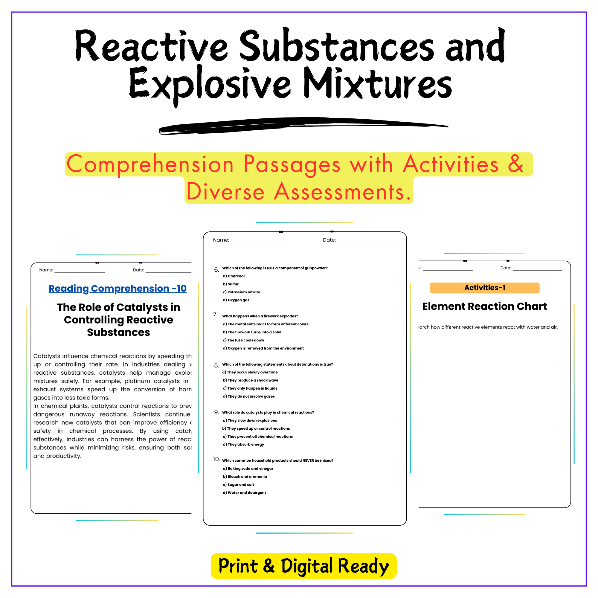 This versatile worksheet is perfect for individual assignments, group discussions, homeschooling, or extra practice, ensuring that every student grasps the importance of reaction safety and chemistry fundamentals. With a mix of comprehension passages, fill-in-the-blanks, multiple-choice questions (MCQs), true/false exercises, and problem-solving challenges, students stay actively engaged. The included class activities encourage safe exploration and excitement in learning.
