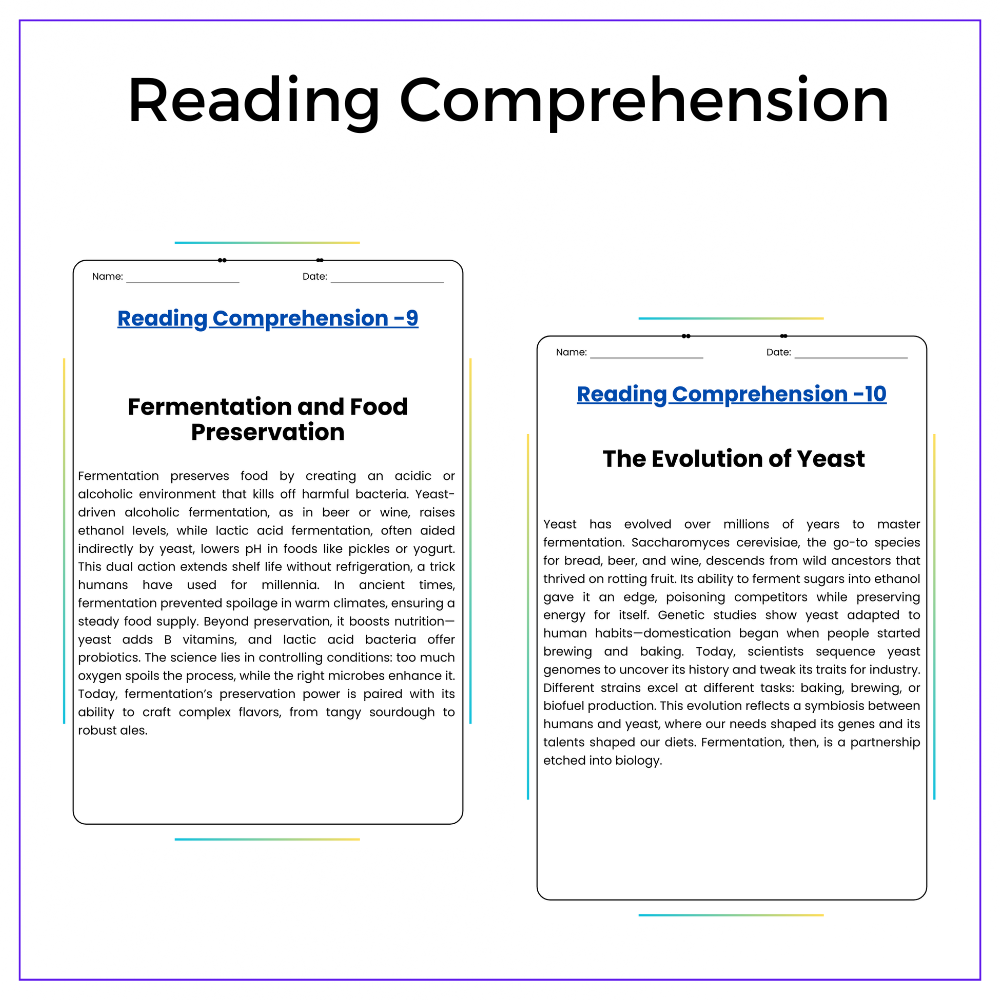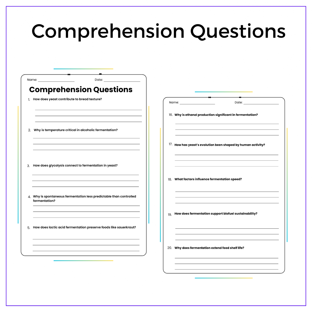 • Comprehension passages – Explain fermentation and anaerobic respiration