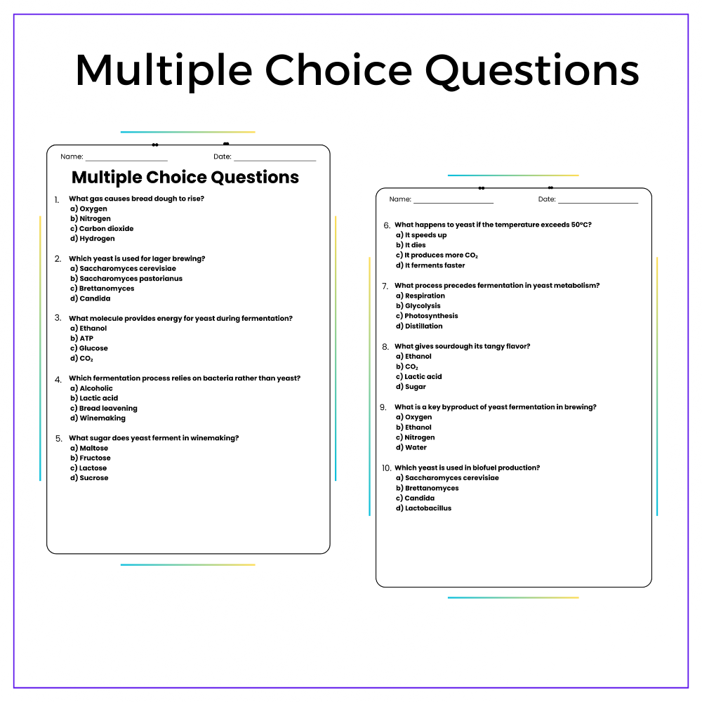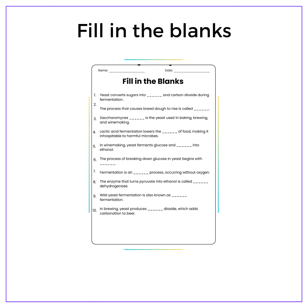 • Fill-in-the-blanks – Reinforce terms like “yeast,” “carbon dioxide,” and “glucose”