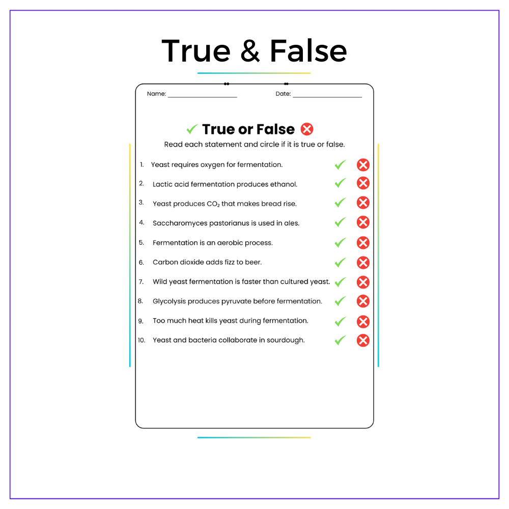 • True & False exercises – Clarify misunderstandings about yeast and bacteria