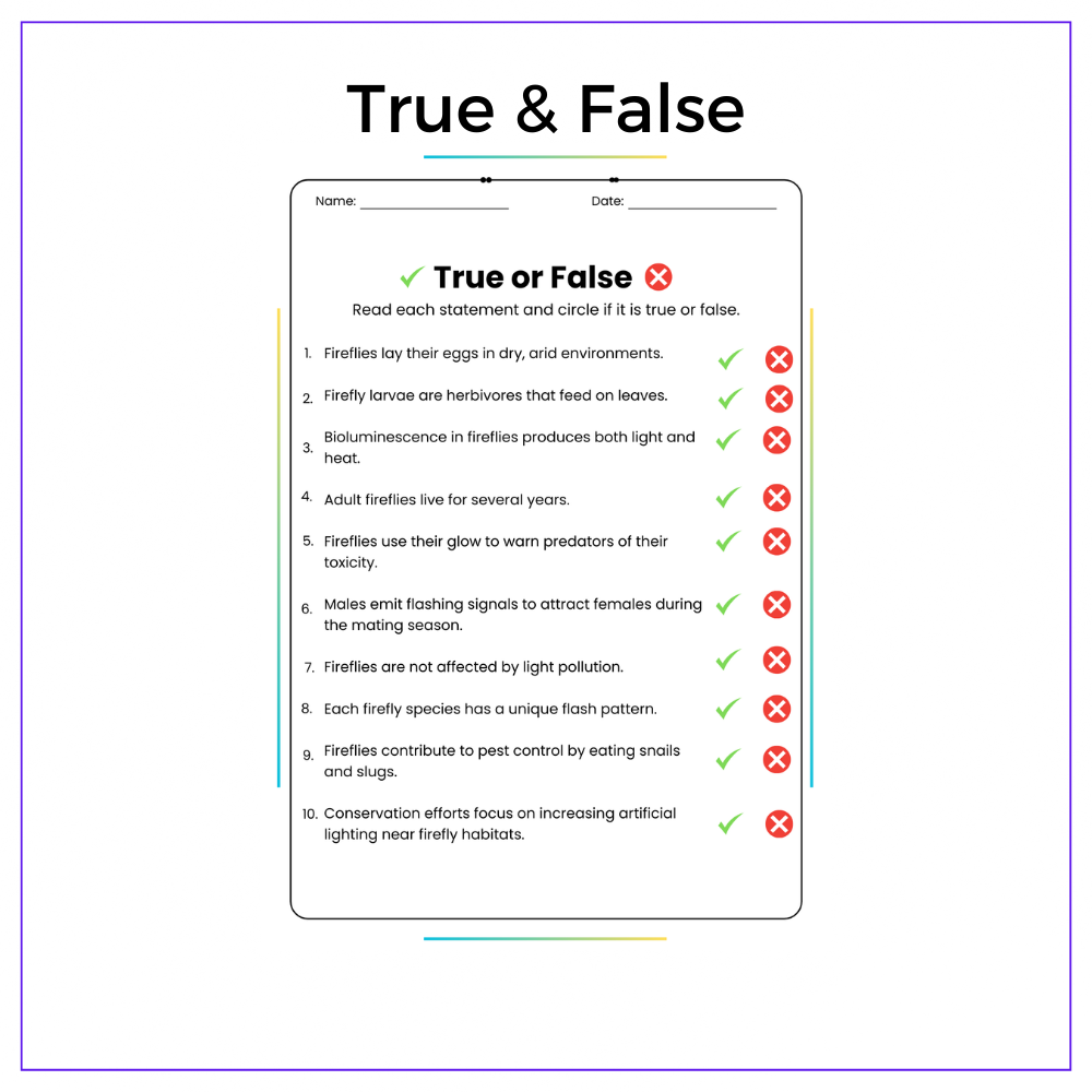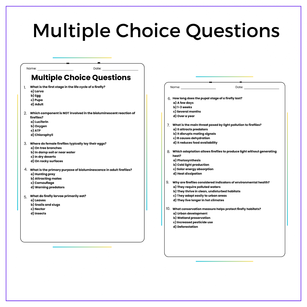 Perfect for individual tasks, group exploration, homeschool lessons, or review sessions, this worksheet uses a mix of reading passages, comprehension checks, and classroom activities to teach students how fireflies glow and grow. It’s an illuminating way to reinforce learning!