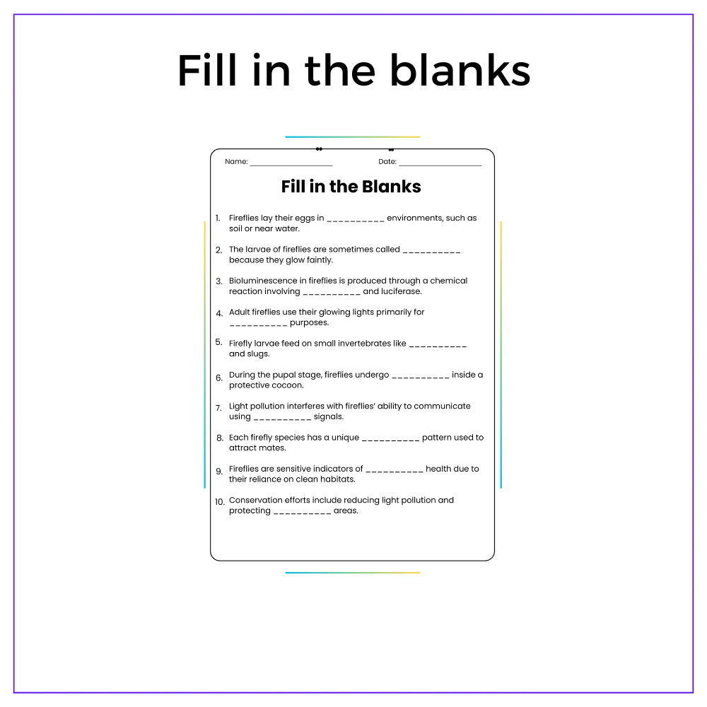 • Fill-in-the-blanks – Reinforce scientific vocabulary and key facts