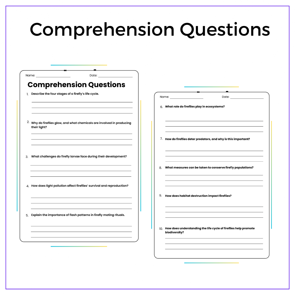 • Comprehension passages – Explore each stage of a firefly’s glowing life