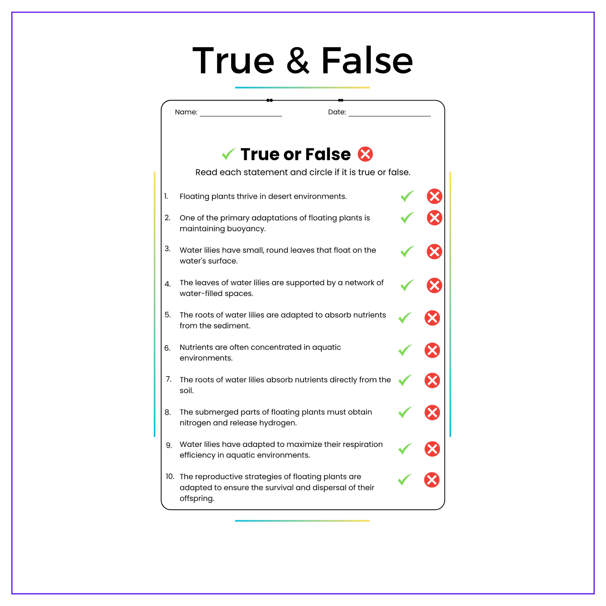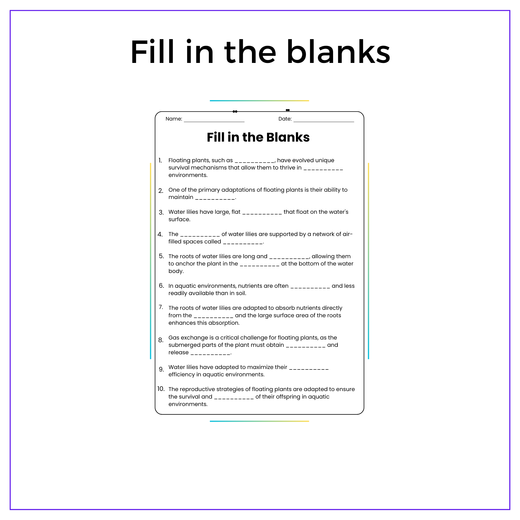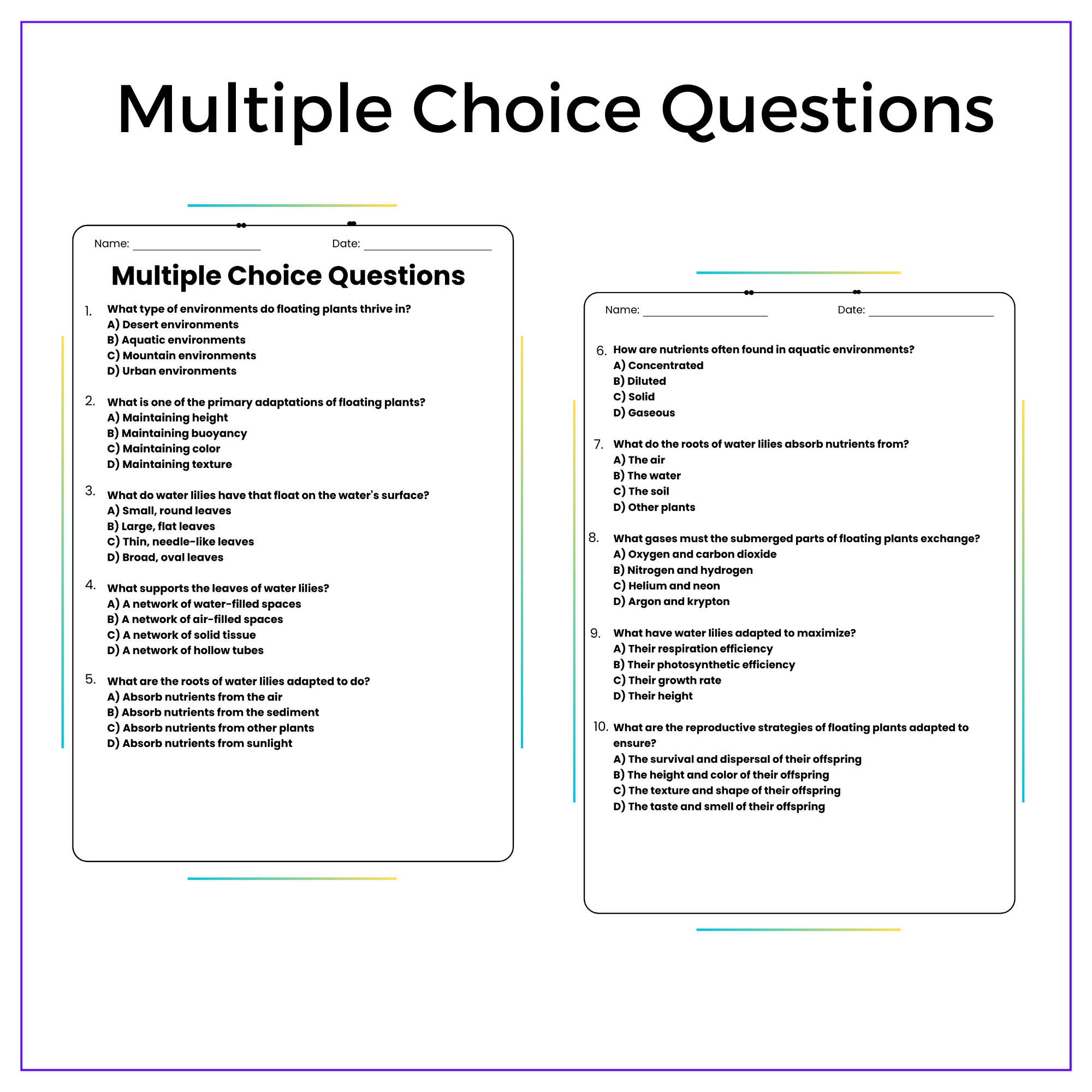 This worksheet helps your students discover how floating plants survive in aquatic environments with this interactive Floating Plant Survival worksheet! Designed for grades 4-8, this resource uncovers the smart adaptations of water lilies and similar plants, simplifying complex ideas through fun and engaging activities.