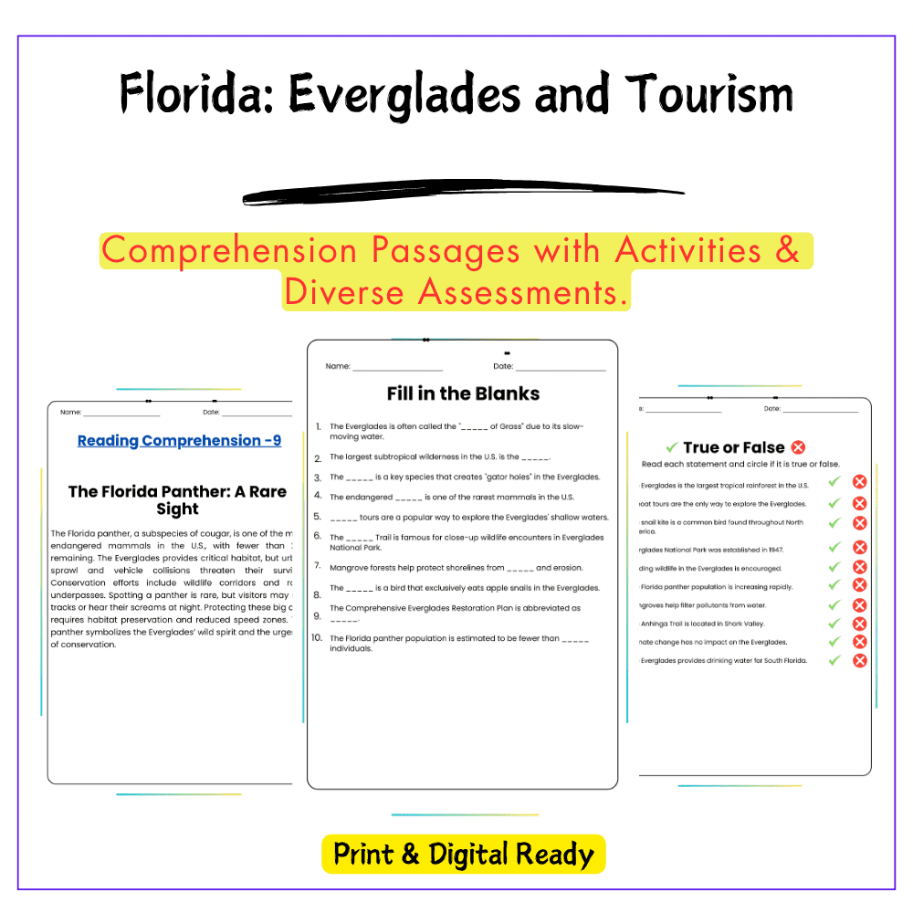 Explore Florida’s Everglades & tourism with our worksheet for grades 4-8! Learn geography & ecology in this engaging lesson!