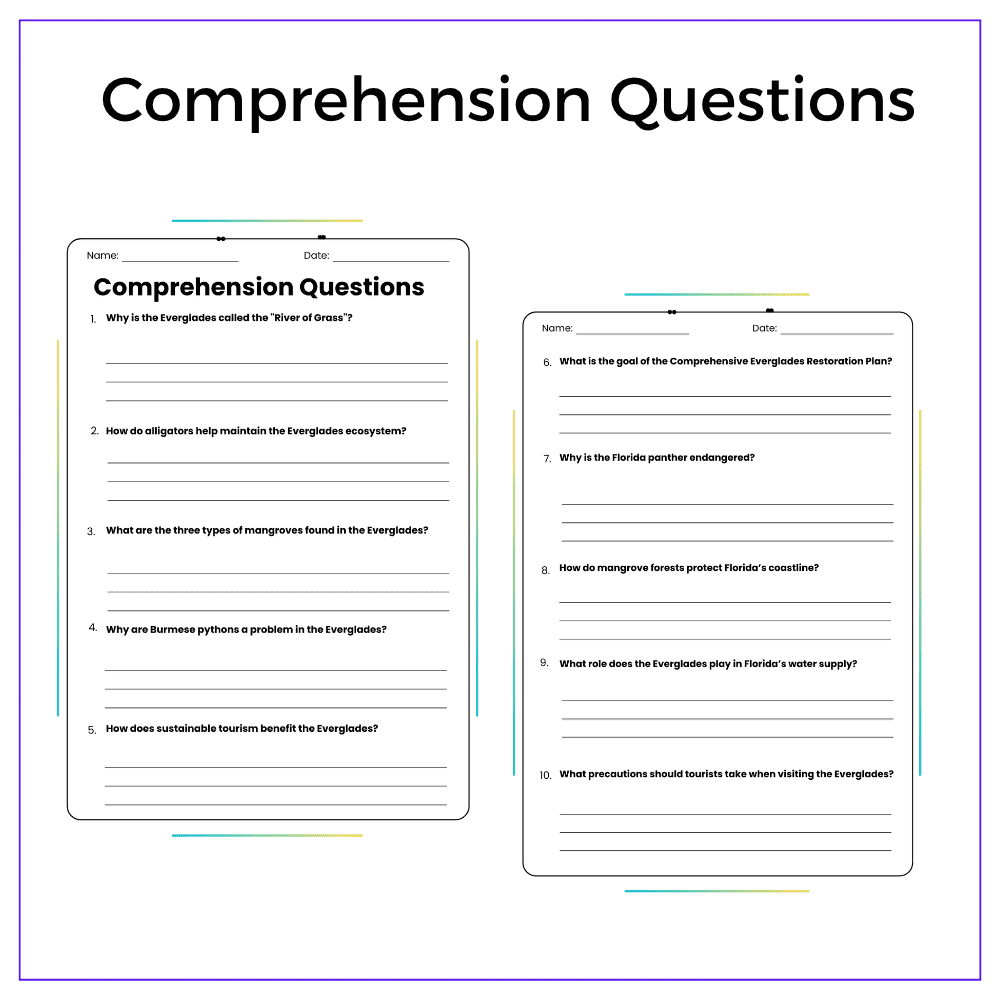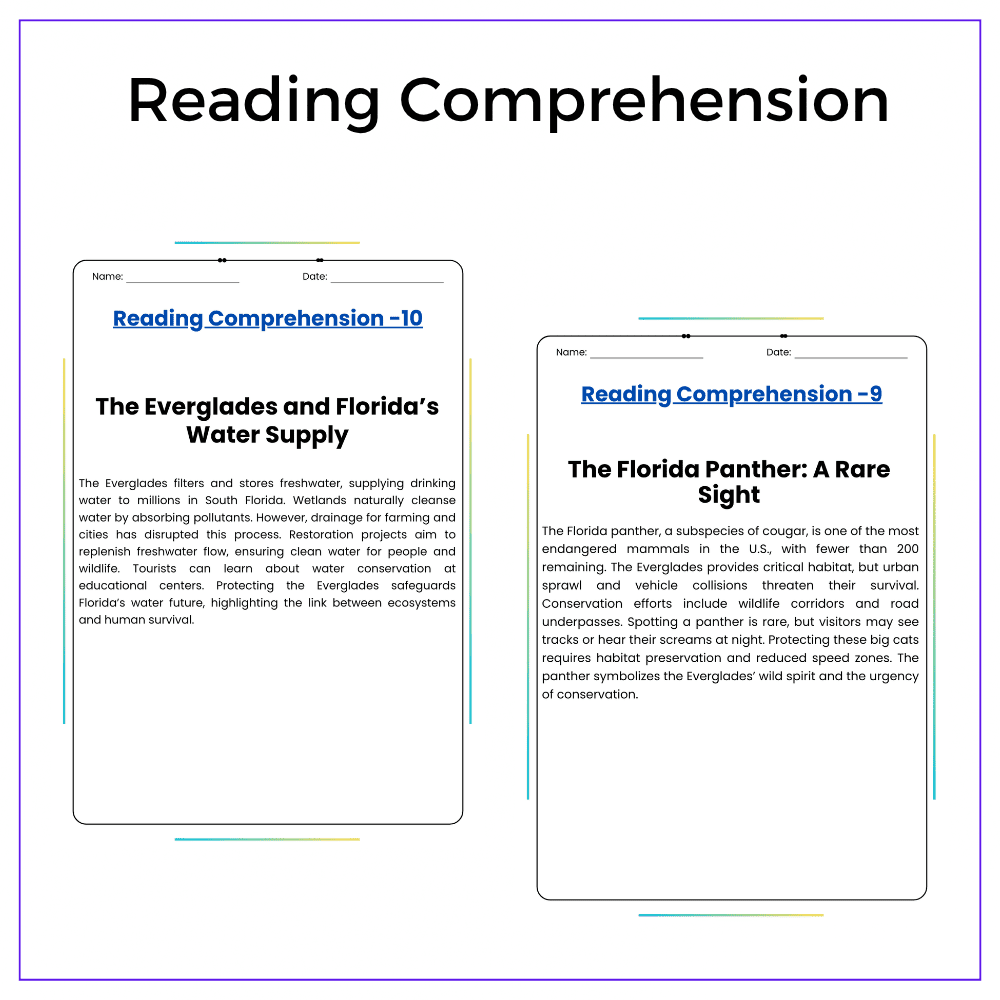 • Comprehension passages – Learn about the Everglades, beaches, and major attractions