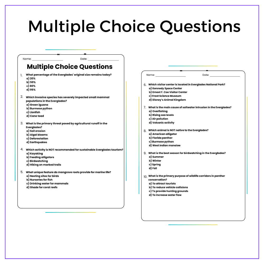 This versatile worksheet is perfect for individual assignments, group discussions, homeschooling, or extra practice, showing how natural features and human activity shape Florida’s identity. Students explore through reading passages, fill-in-the-blanks, MCQs, and creative activities to make learning engaging and memorable.