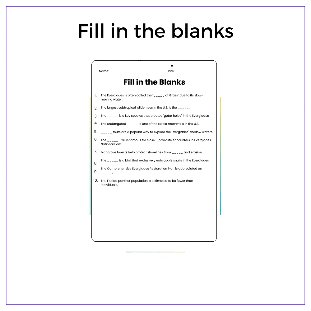 Florida Everglades Worksheet